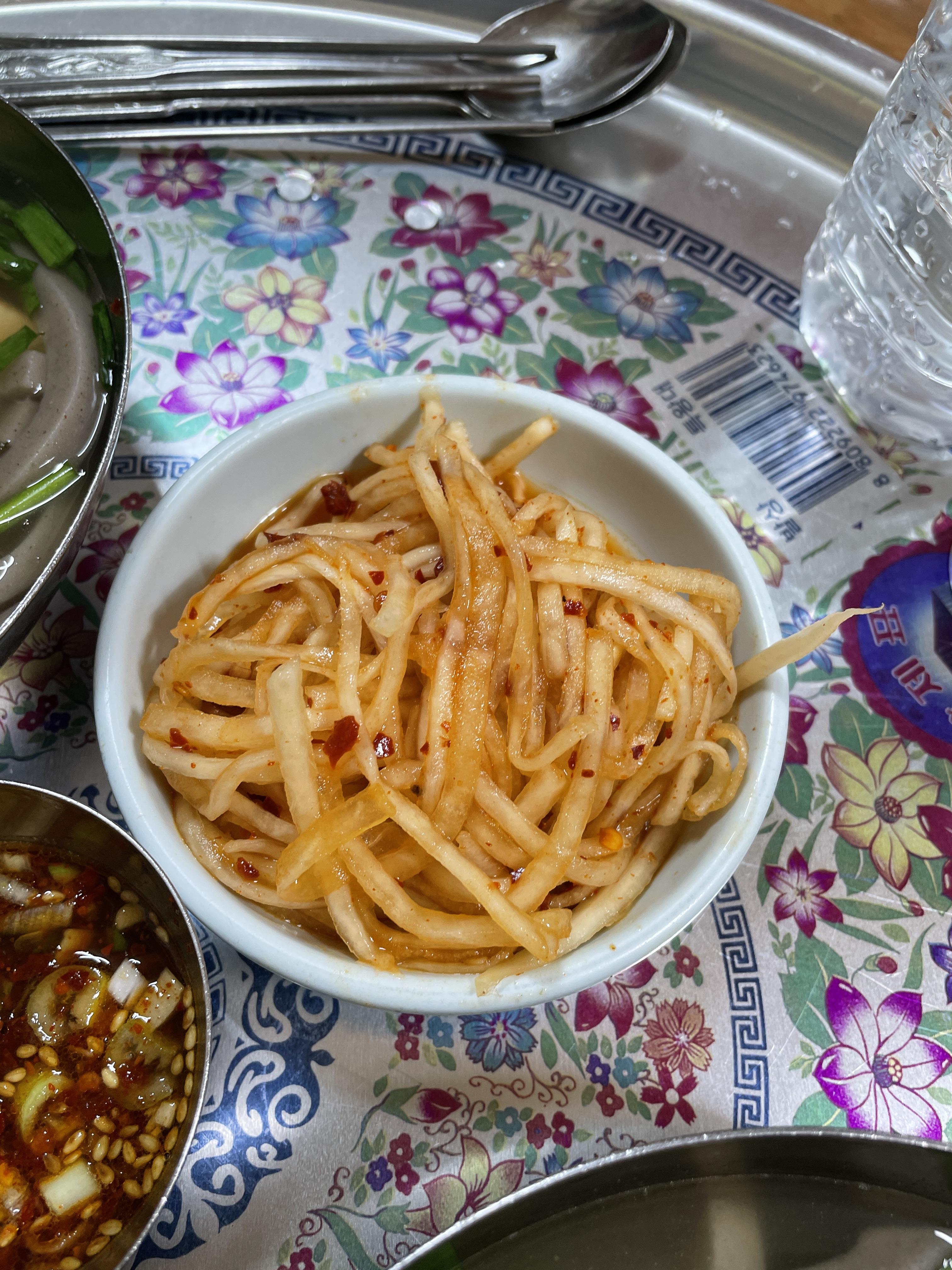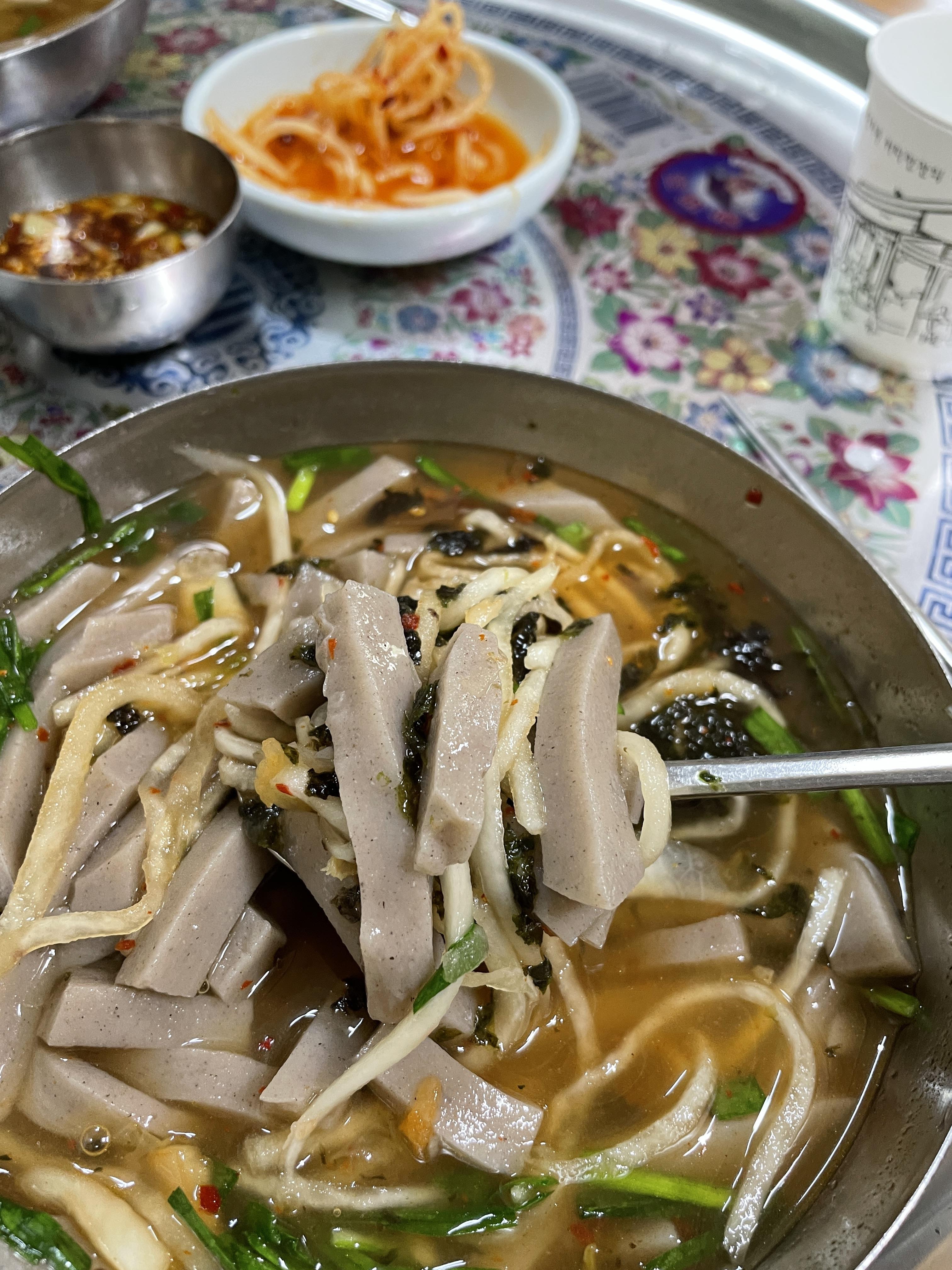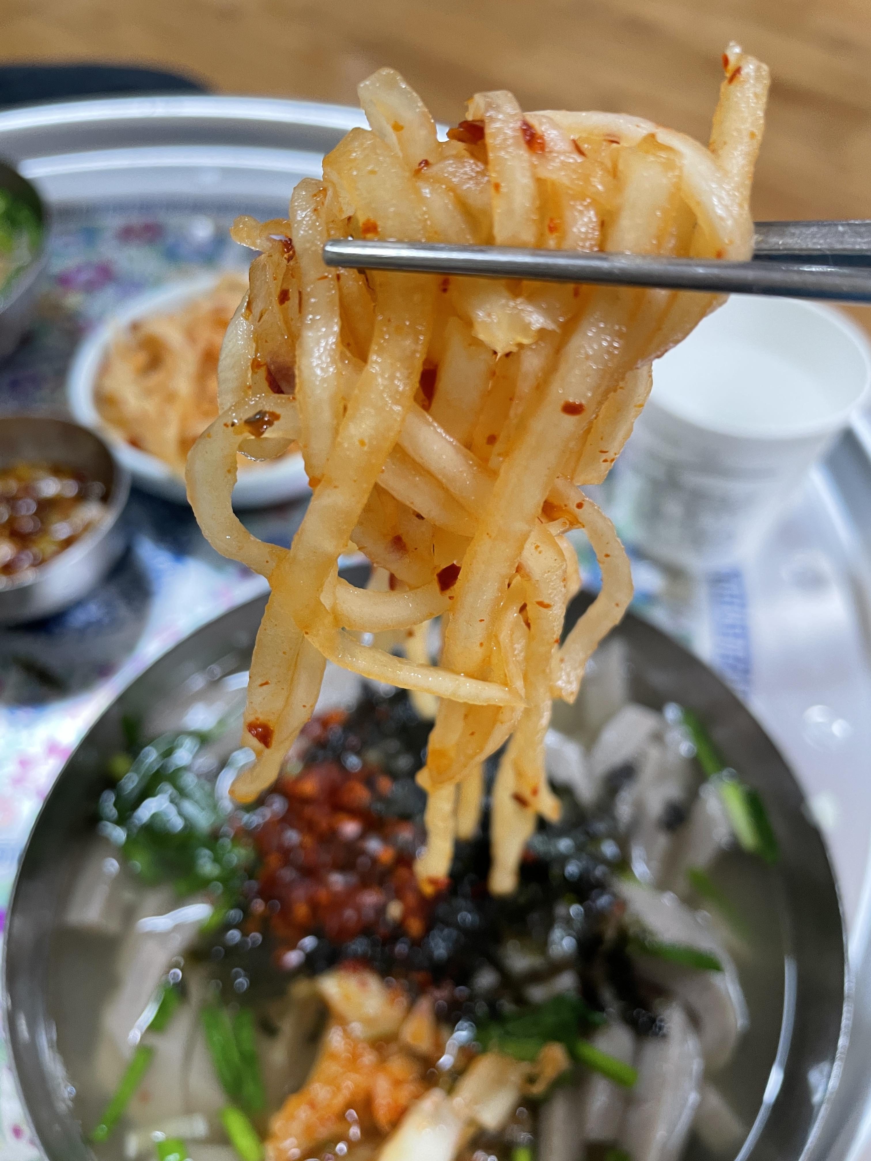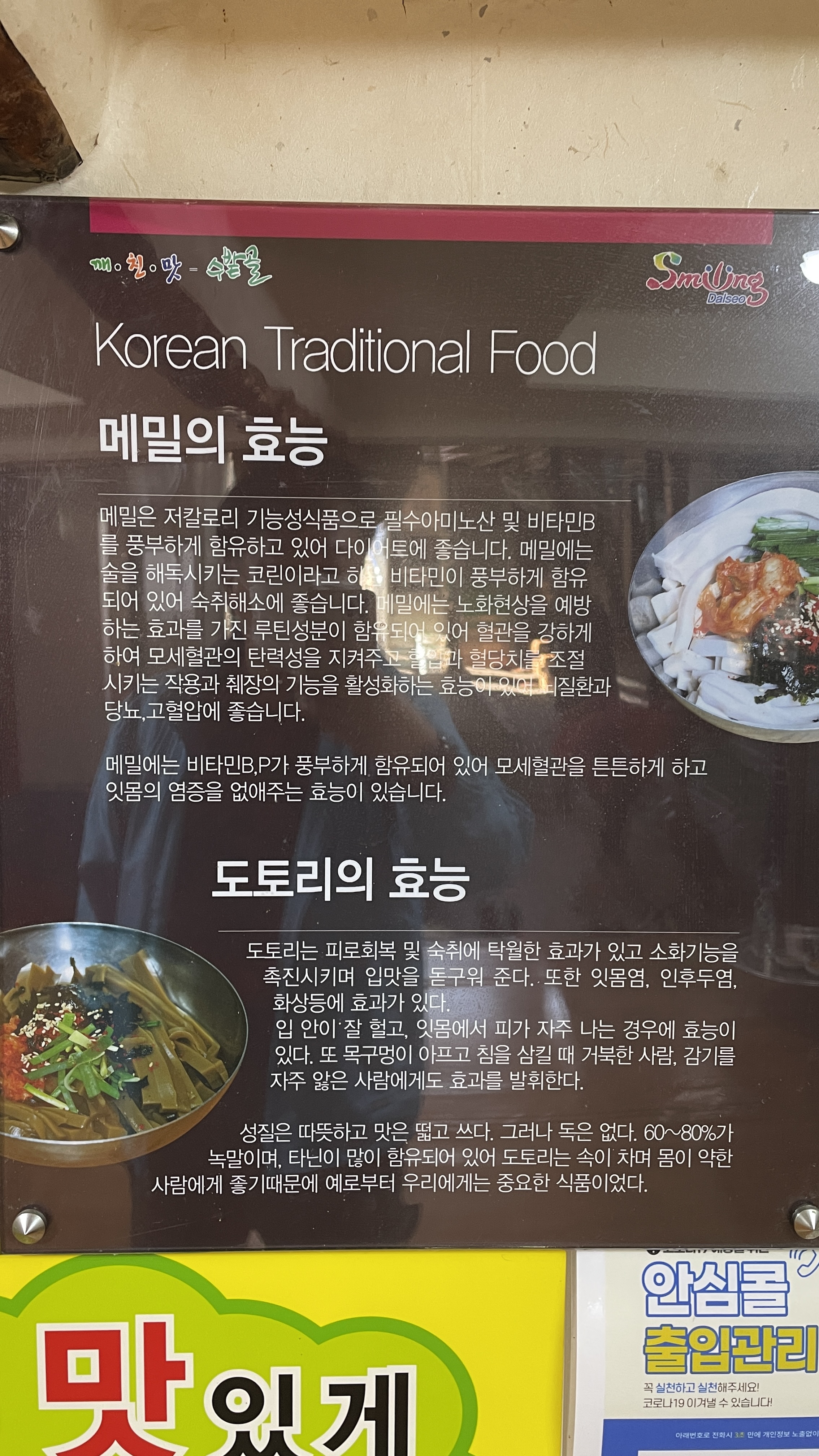 묵을 먹는 동안 옆 테이블에서 찌짐 먹는 것을 본