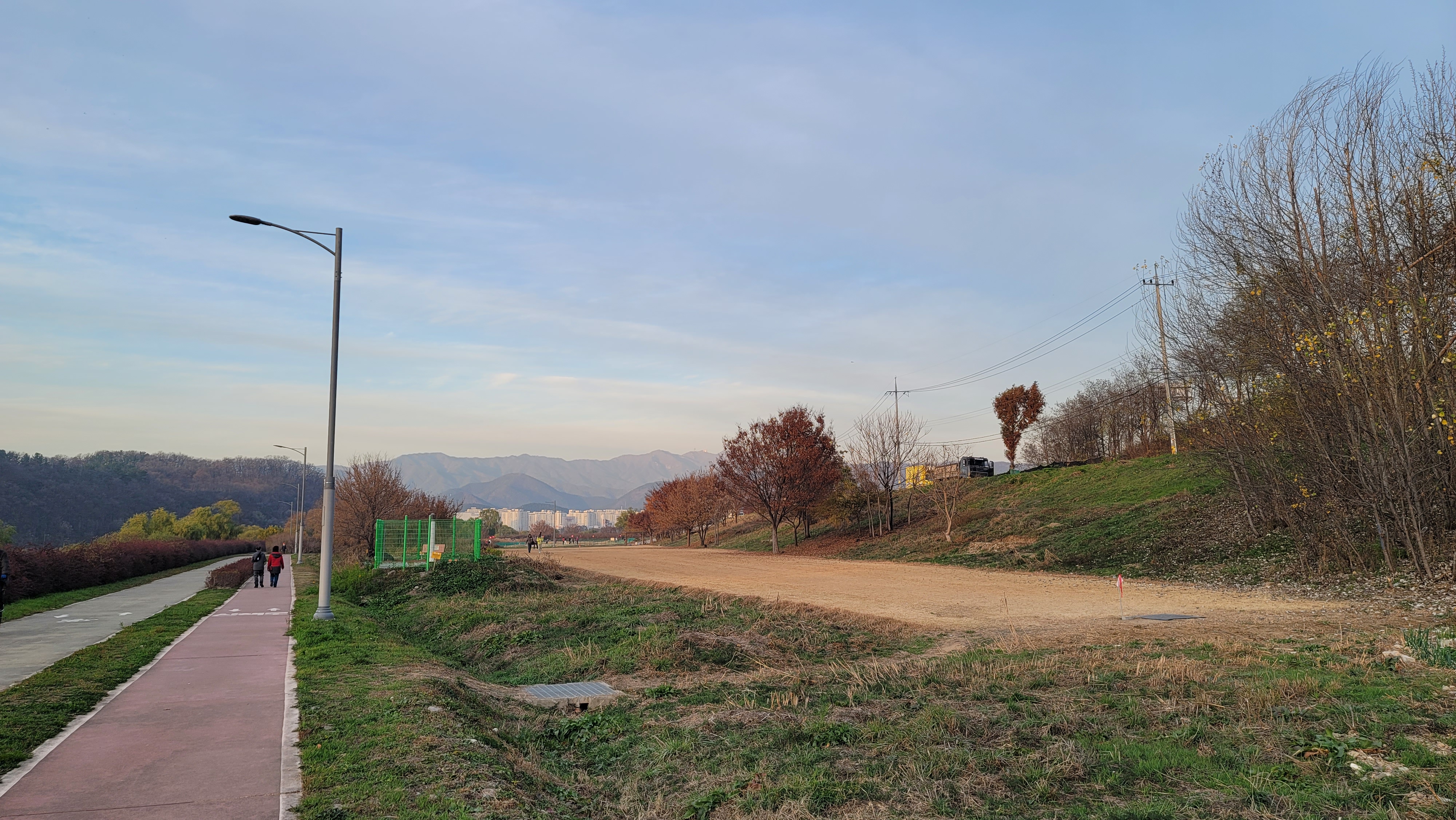 조금 멀어도 공항교를 건너 산책로를 걸어보시는 것도 나쁘지는 않을 것 같습니다. 공항교 아래 강변공원에 억새가 너무 보기 좋거든요. 네이버지도에서 거리를 측정해보니 약 1km 정도가 되더군요(A코스까지)