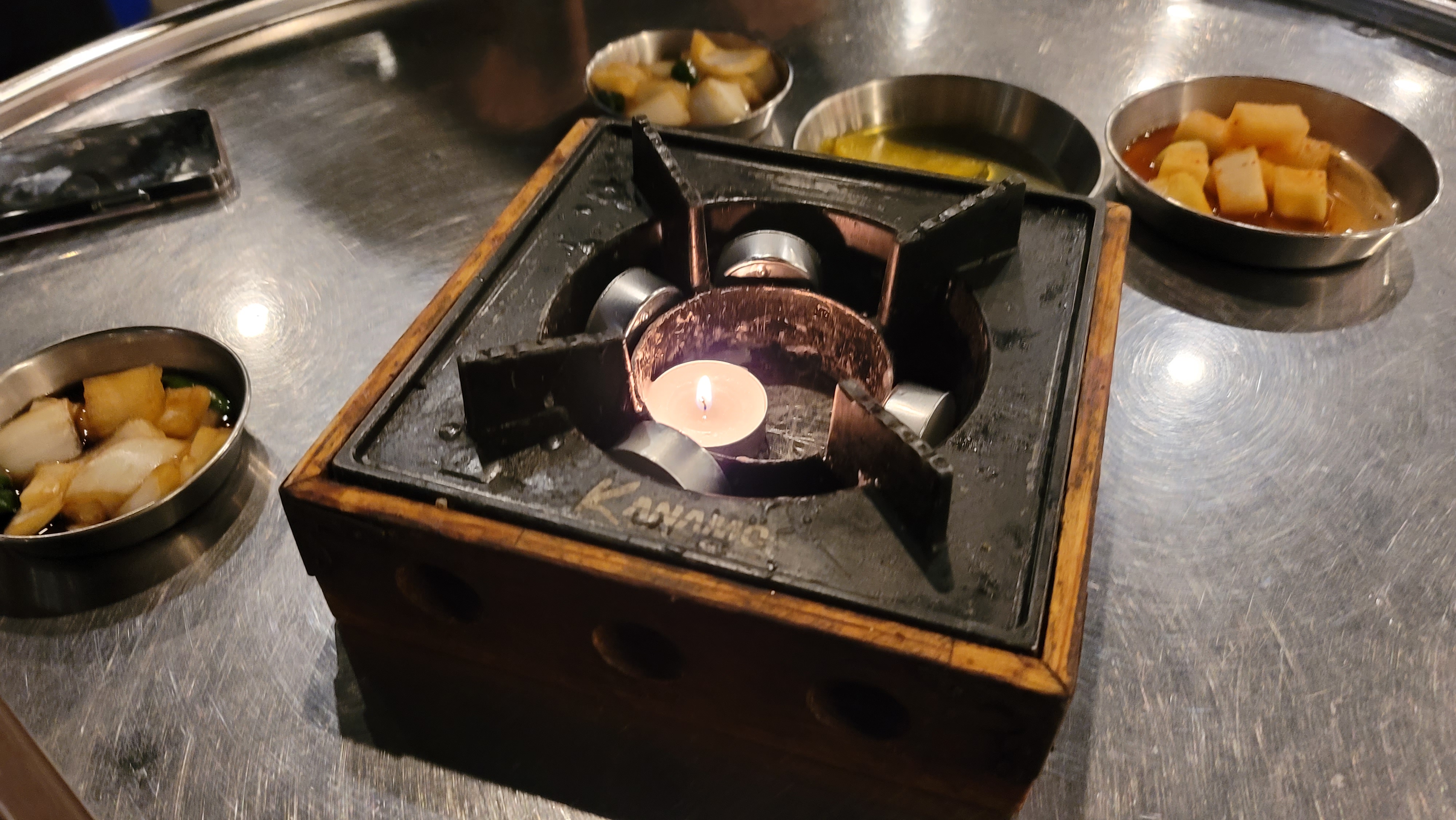 불고기를 올릴 촛불이 담긴 불판이 놓여지고요