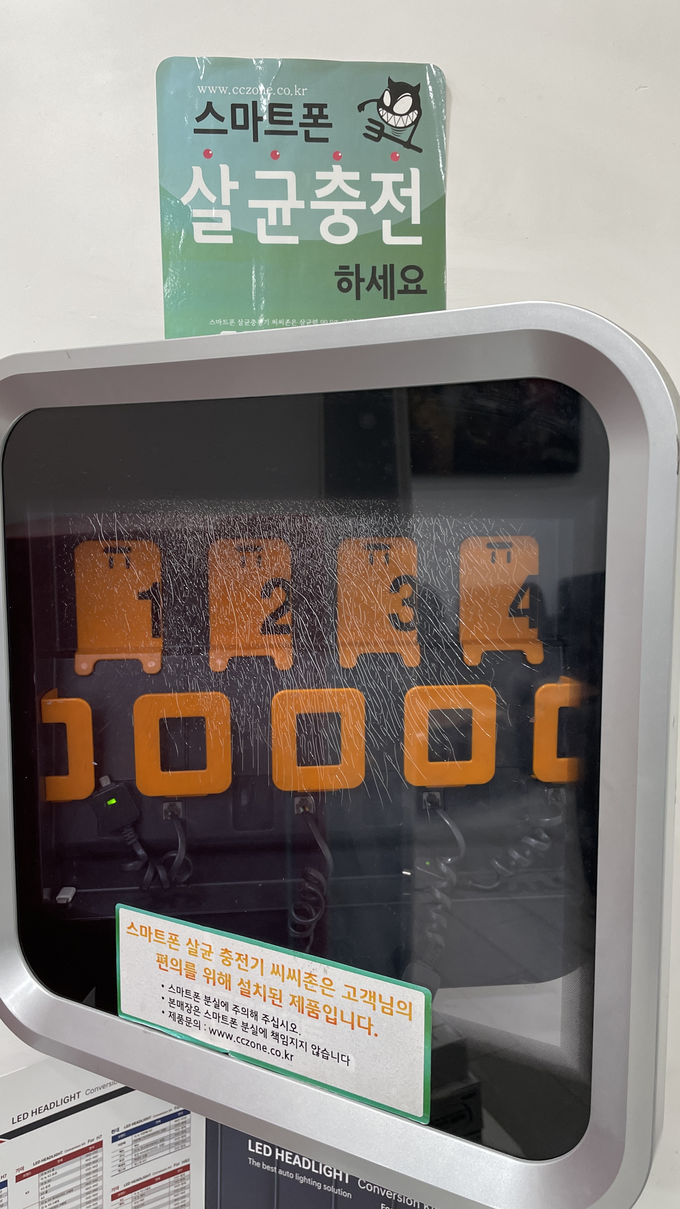 좌측 구석에는 휴대폰 충전기와 소독기도 있으니