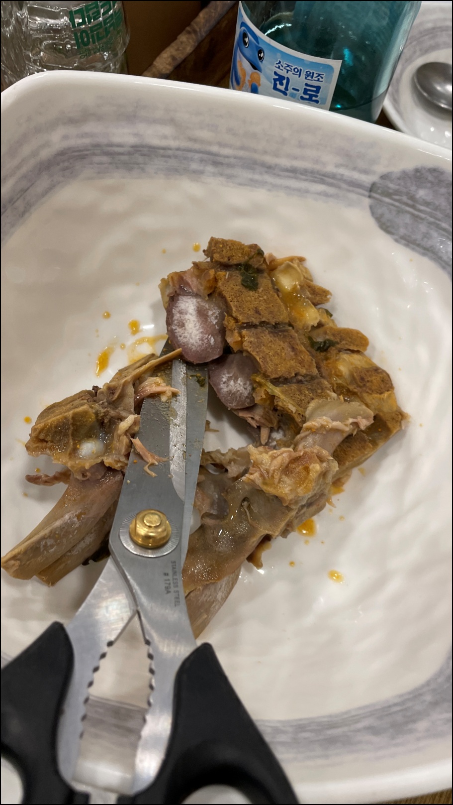 그러고 나서는 해장국에 들어있는 뼈에서 고기를 발라내야 합니다. 이렇게 뼈와 살을 먼저 발라주는 이유는 밥을 말아서 편하게 먹을 수 있으니까요. 아울러 해장국이 뜨거울 때 고기가 더욱 잘 발라지니까요.