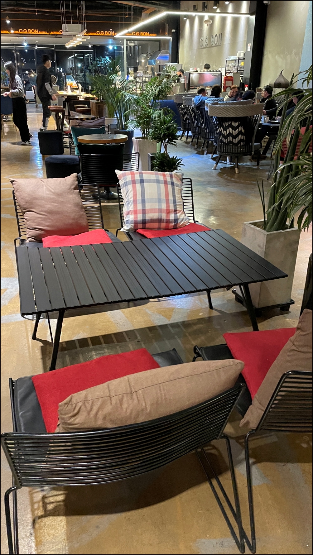 시지본 카페에는 고풍스러운 쇼파부터, 좌식 테이블, 심지어는 캠핑용 테이블과 의자까지 있었다.