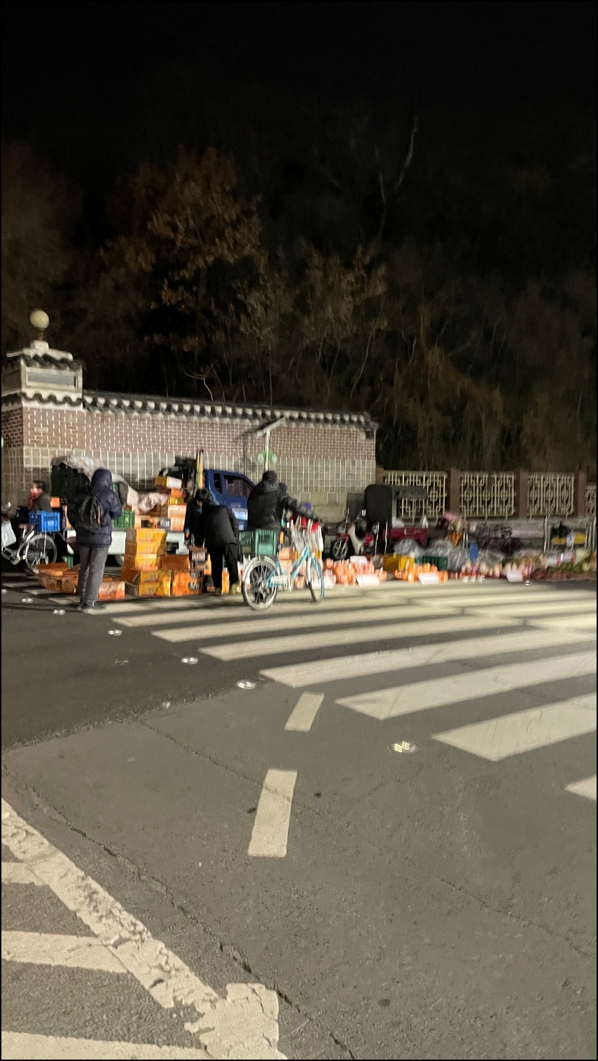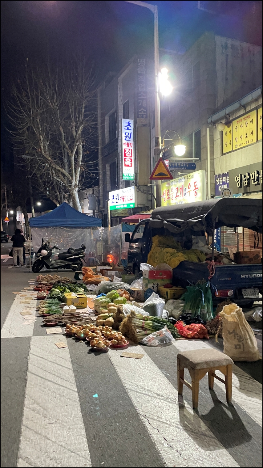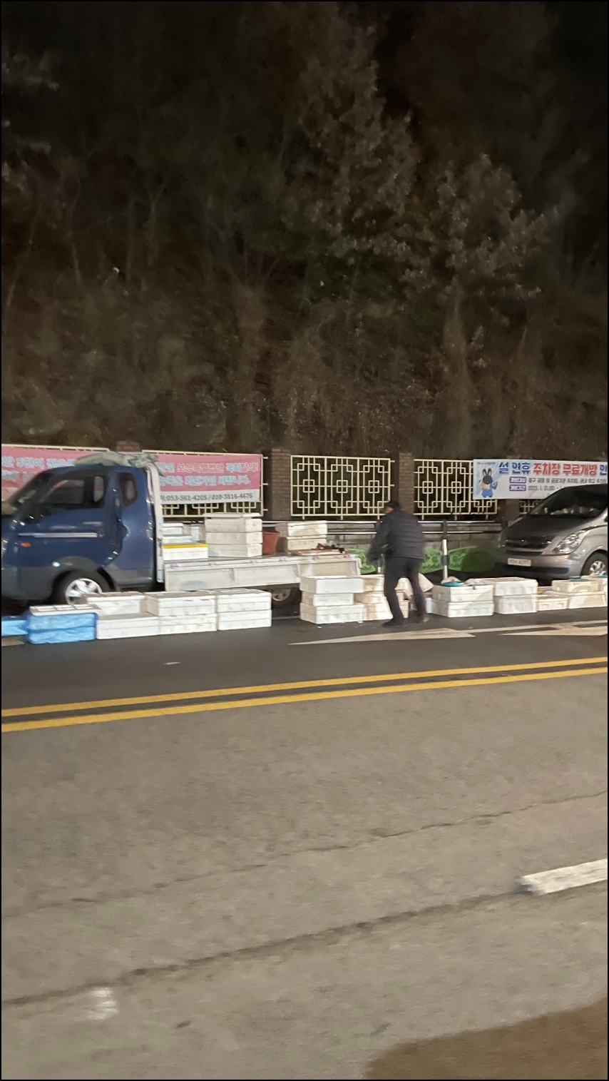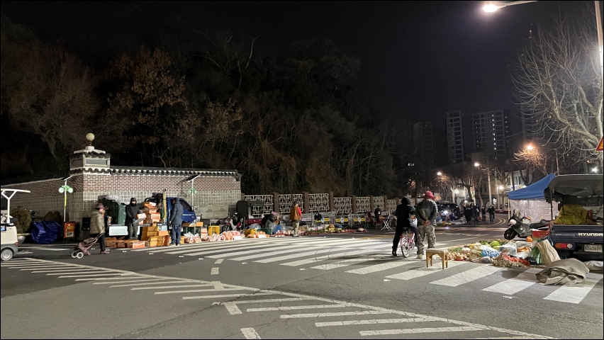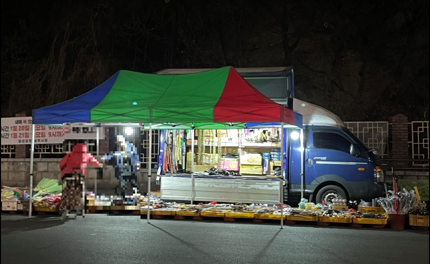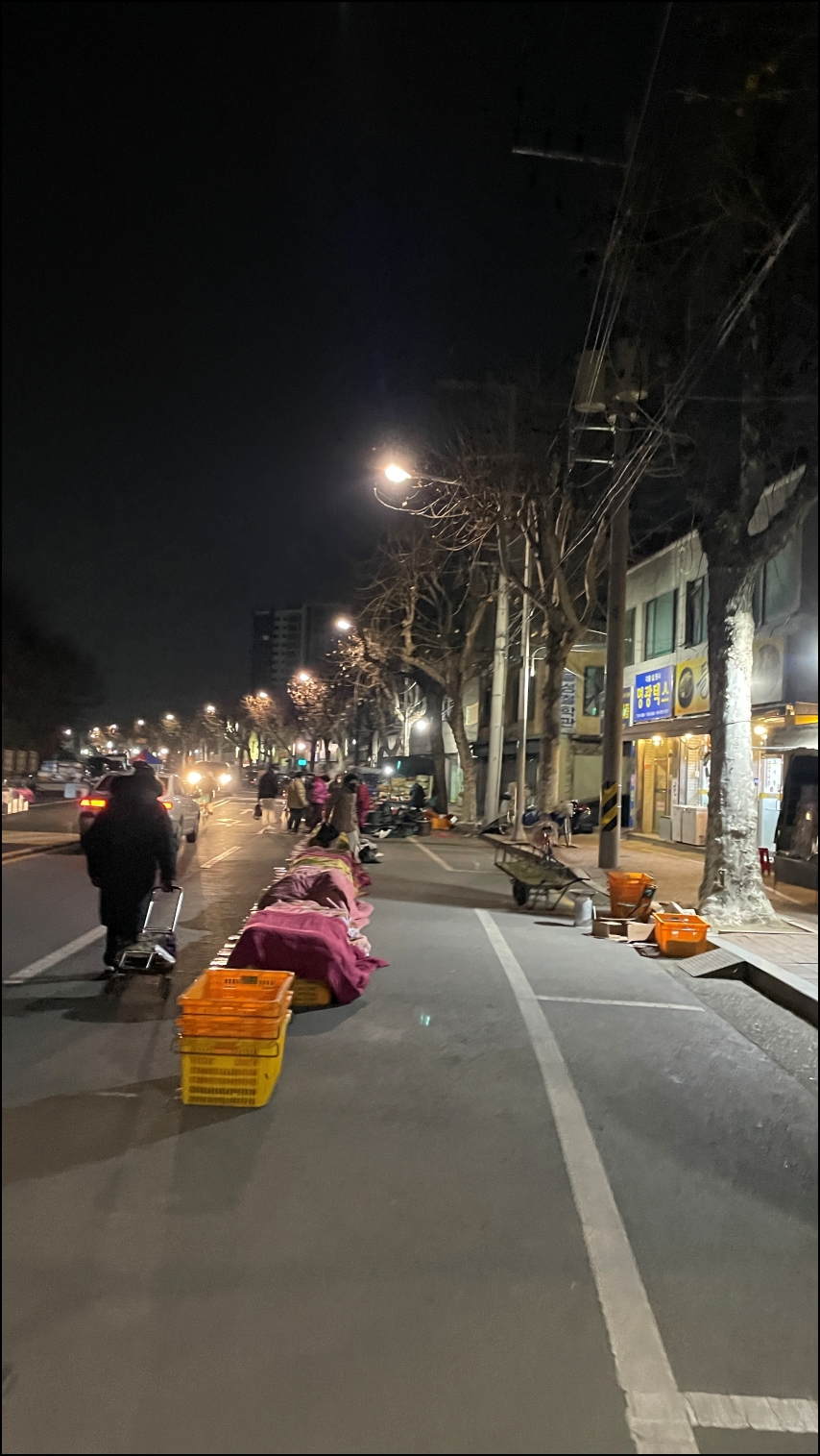 겨울이고 평일이라 예전에 봤던 모습보다는 새벽시장의 규모는 작았다. 100% 이해가간다. 아직 밤이 길어서 어둠이 내려서 그러한 듯하다.