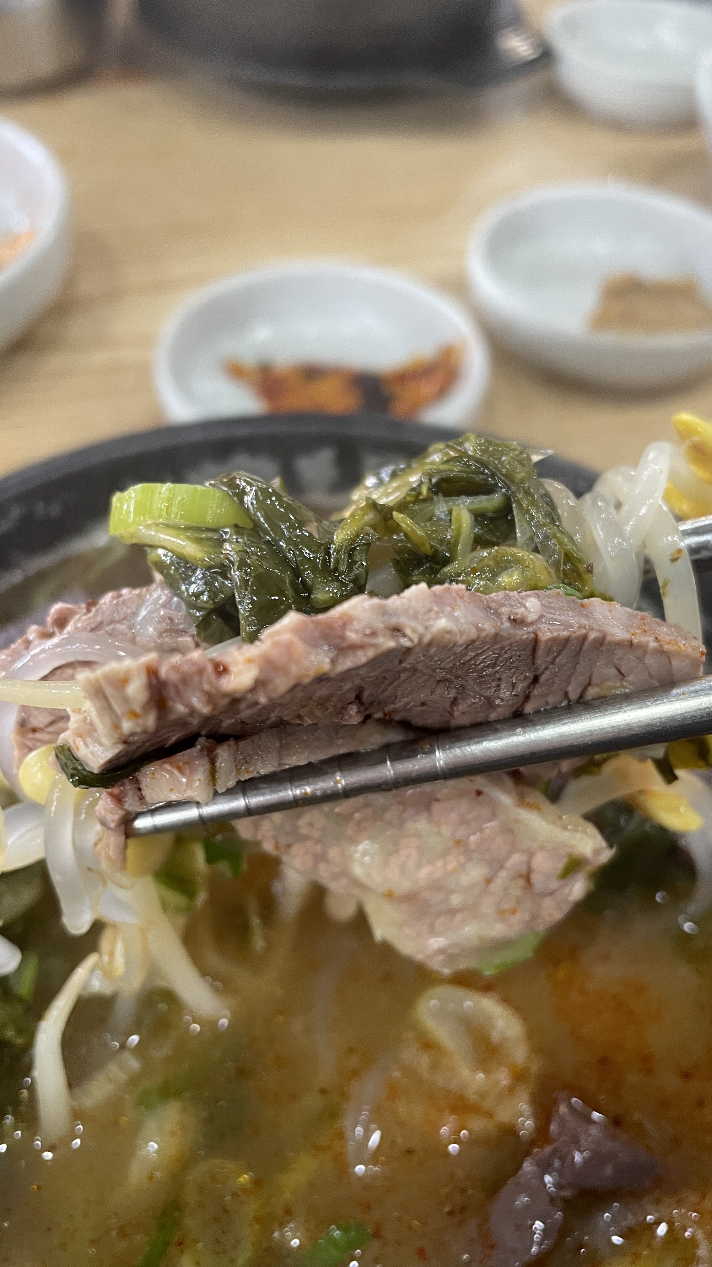 소고기 육수에 숙취해소에 좋은 아스파라긴산이 들어있는 콩나물까지 있으니 저절로 해장이 되겠죠?