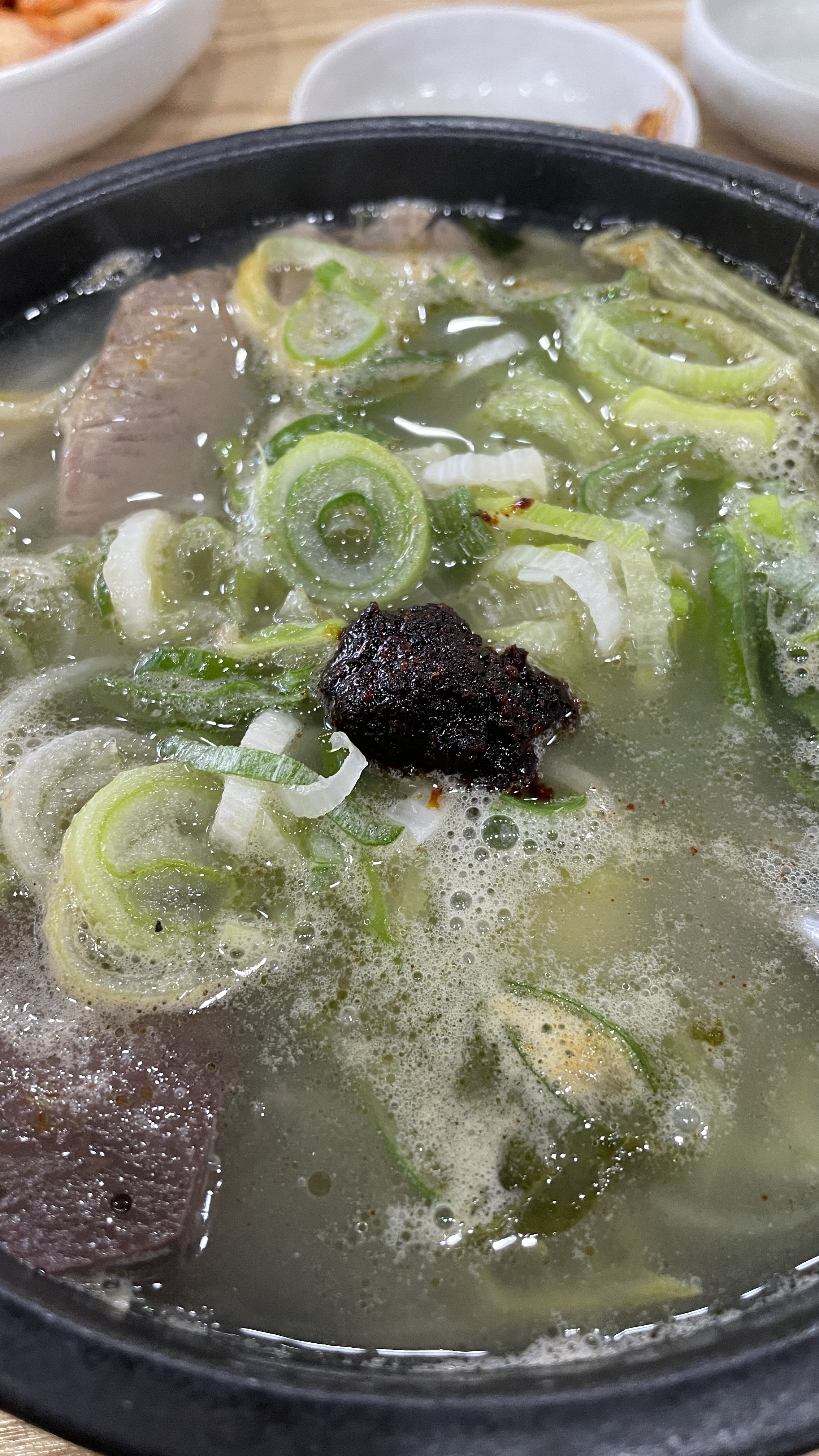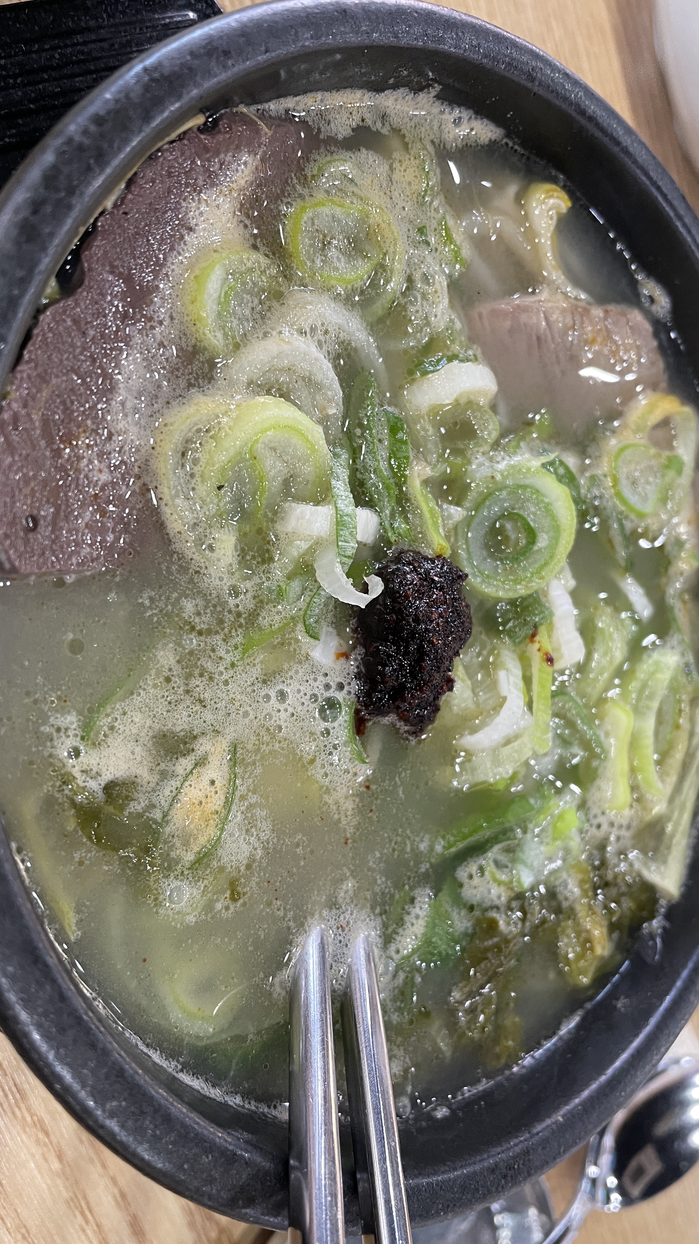 맑은 소고기 선지해장국인데 독특한 양념장을 올려서 먹었던 것이 기억에 남습니다.