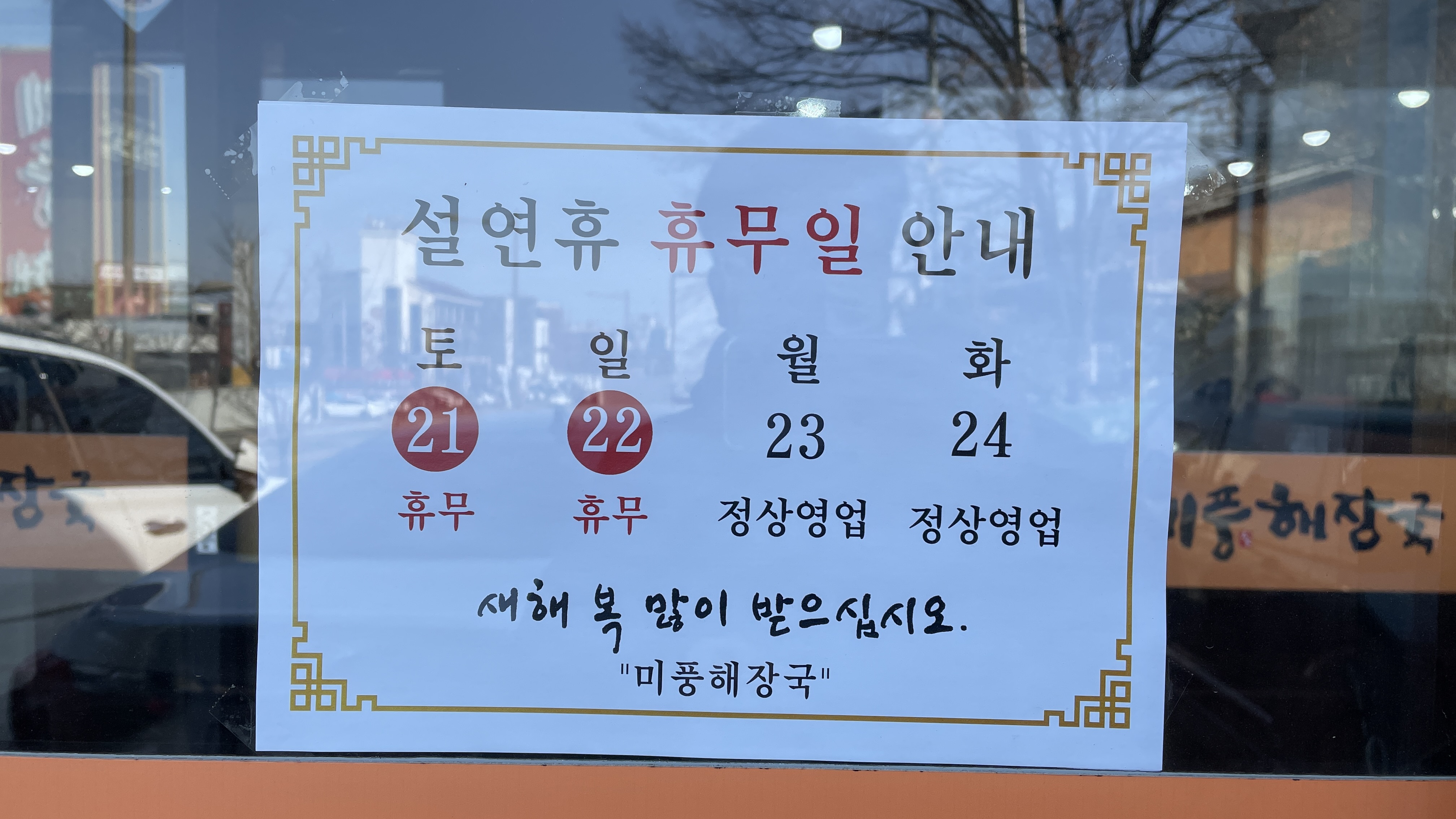 설 전날(21일) 설 당일(22일)은 휴무입니다.