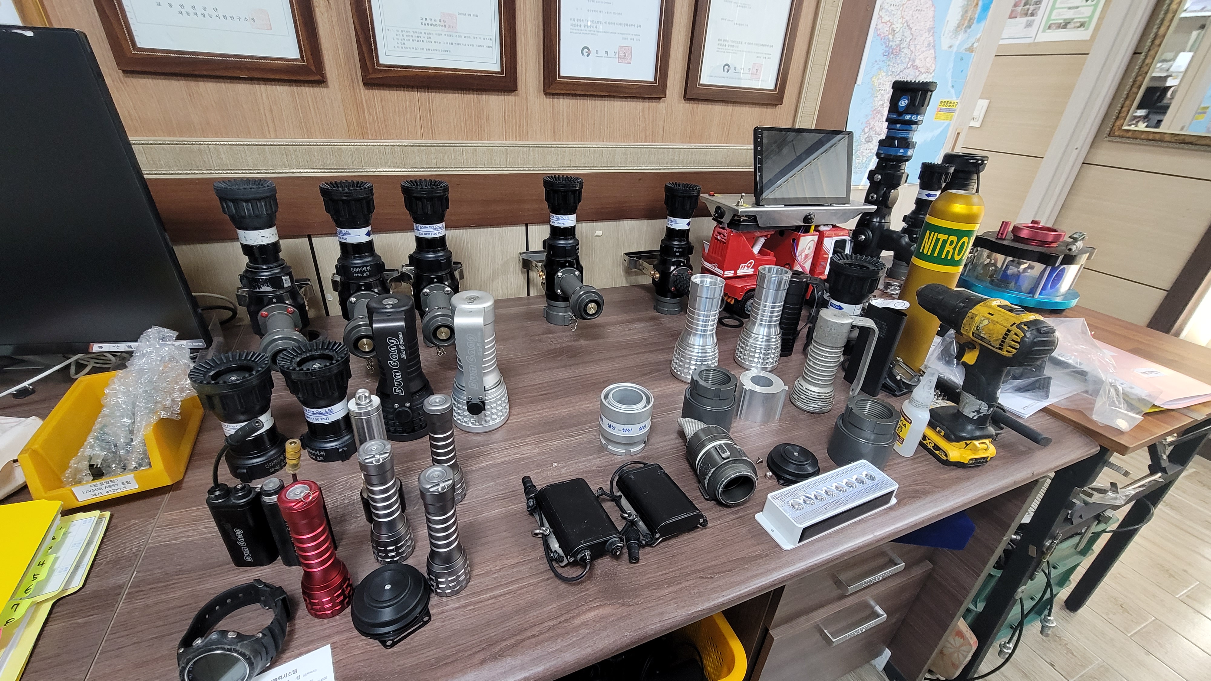 그동안 연구개발하면서 만든 시제품들이 옆에 전시되어 있었는데 그 과정이 쉽지은 않았을 겁니다. 이제는 특허출원까지 끝냈으니 소방 관련 인증을 받고 홍보를 잘해서 판매만 하면 되겠죠?