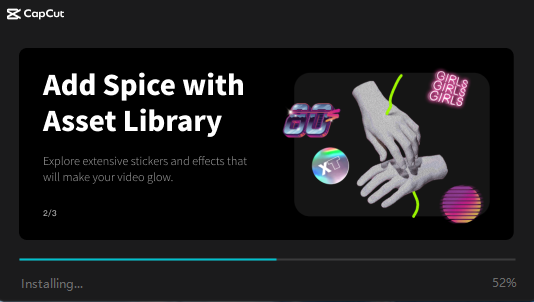CapCut PC 용은 capcut.com 에서 다운로드가 가능하고요, PC에 다운로드 한 다음 더블클릭하면 설치가 시작됩니다.