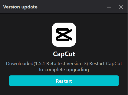 프로그램 설치가 끝나면 CapCut 재시작을 요구합니다.(컴퓨터 재시작이 아니고 프로그램 재시작)