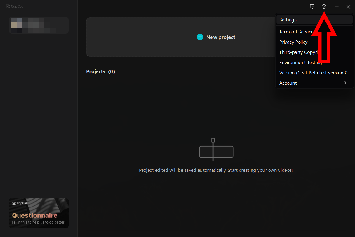 이제 남은 것은 캡컷 메뉴를 한국어로 설정하는 것이 남았네요.