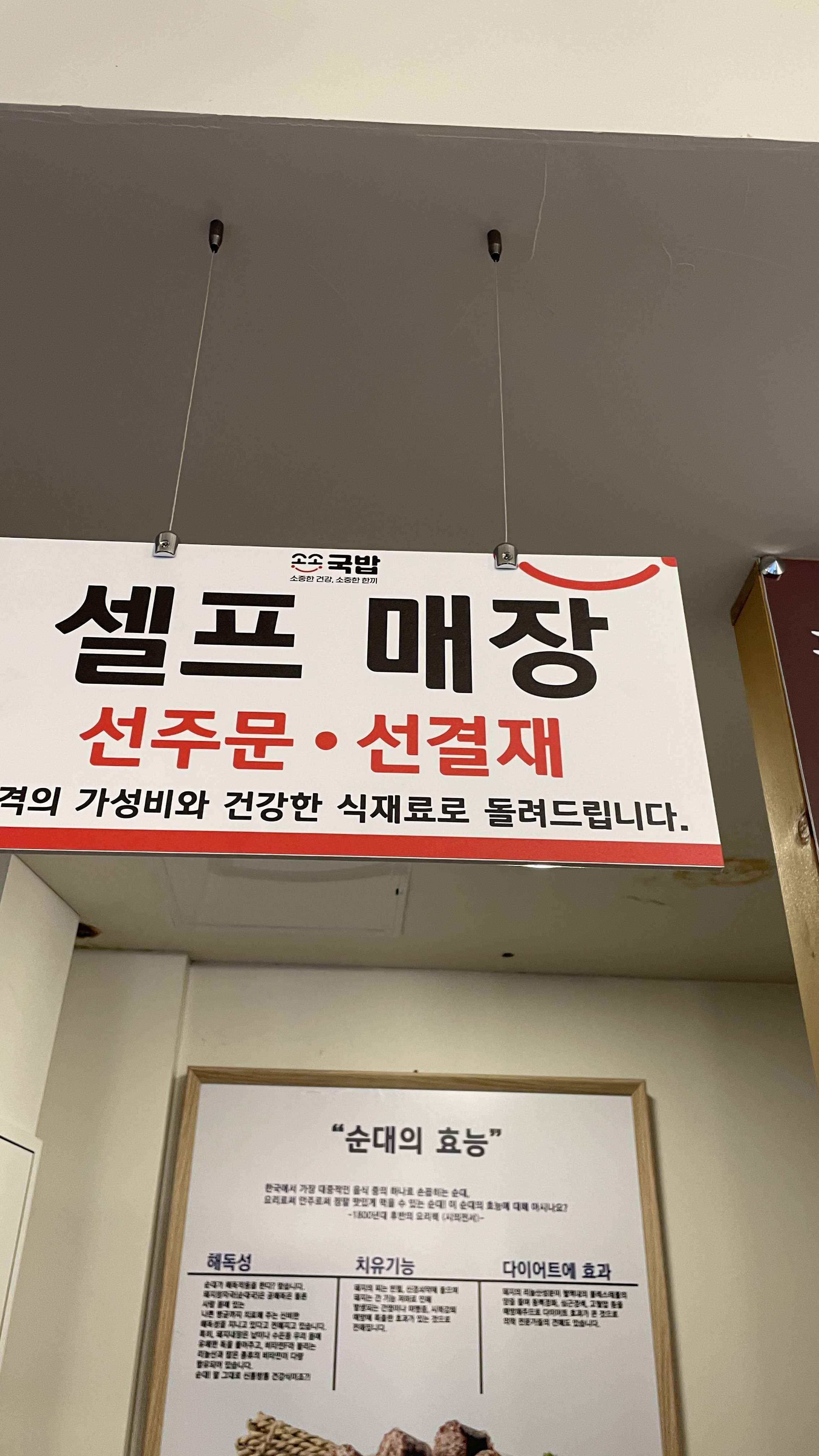 - 식당은 1층, 2층, 주문하면서 선결제하는 시스템, 물, 반찬 등은 셀프