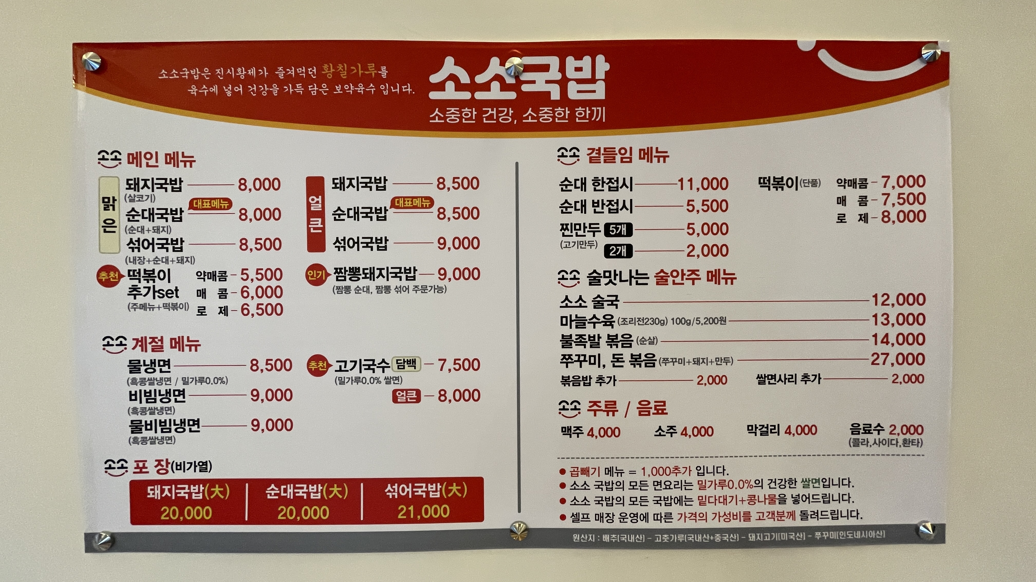 어딜갈까 고민고민하다가 생각나는 곳. 친구 집 건너편 대백프라자 옆에 있는 소소국밥. 전화해서 영업하는 것도 확인하고 신천대로를 달려서 갔습니다.