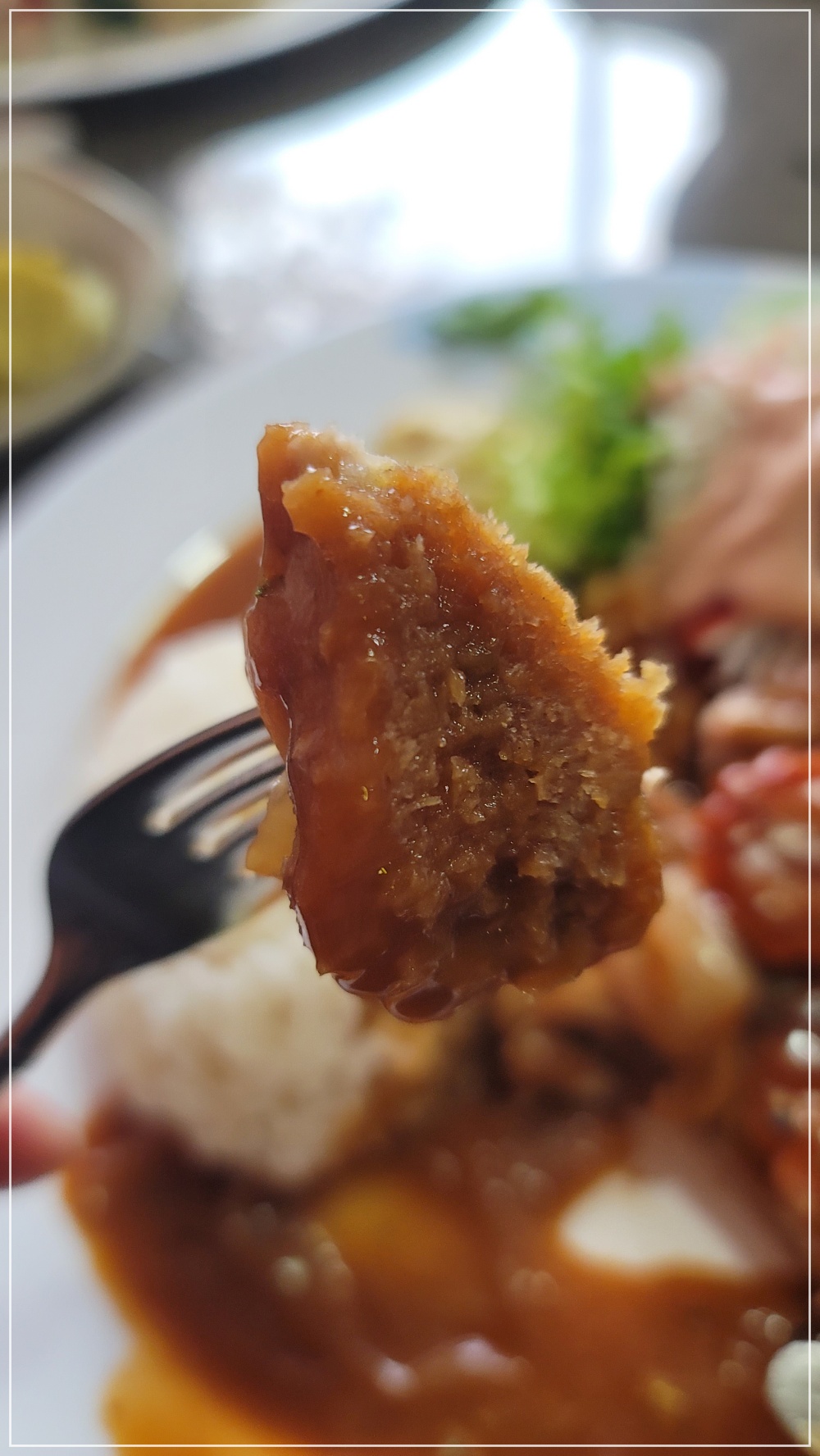 2:1로 맛보라고 주고받아가면서 먹었는데 서로 아메리칸레스토랑의 돈까스도 맛있고, 함박스테이크고 맛있다는 결론에 도달했습니다. 돈까스는 고기의 부드러움을 가지고 있었고 바싹함이 겉을 감싸는 맛이었습니다. 맛도 맛이지만 양도 많아서 오후 5시경에 식사를 마치고 나서 잠들 때까지 뭘 좀 먹을까 하는 생각을 전혀 하지 않았습니다.