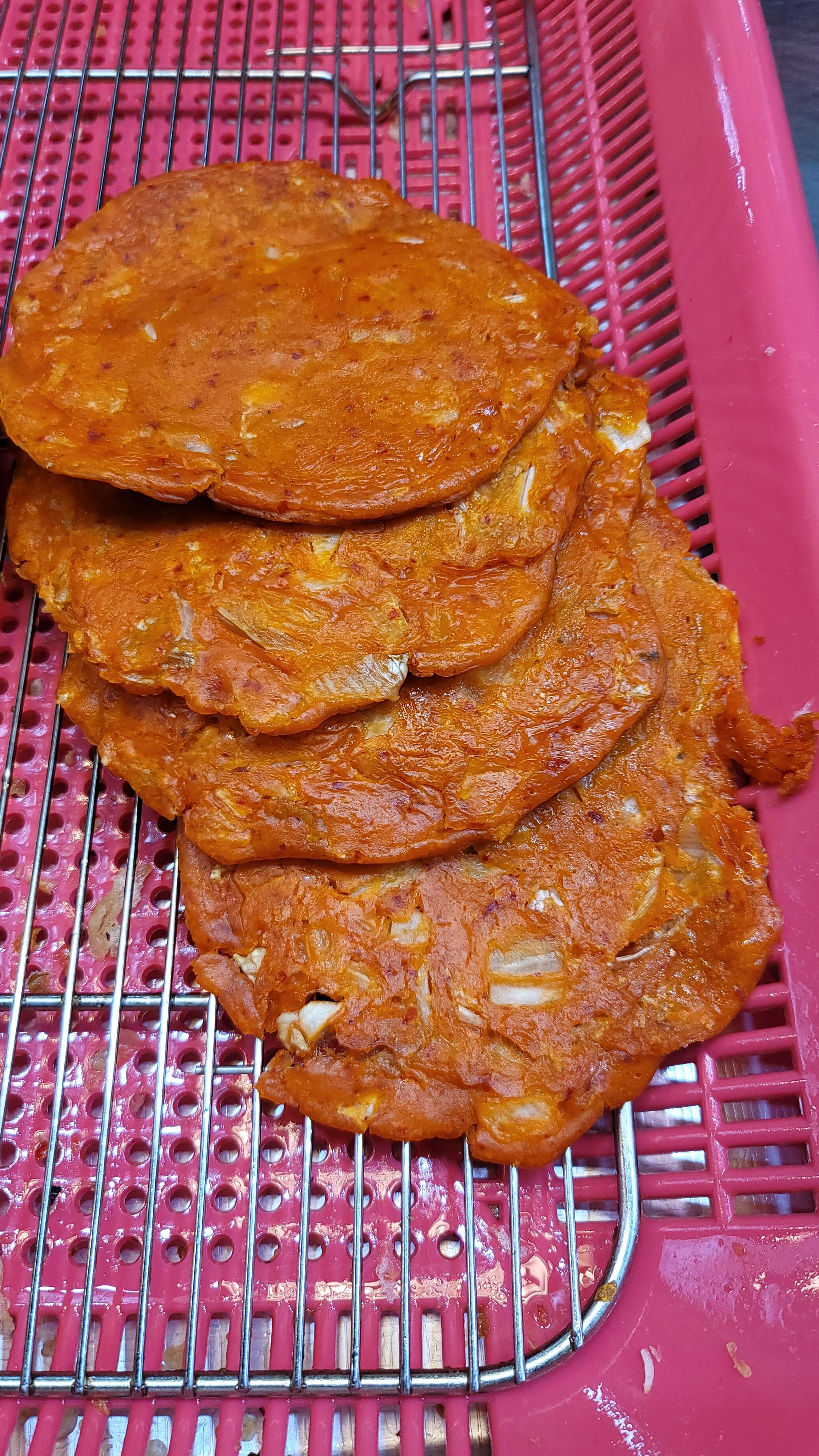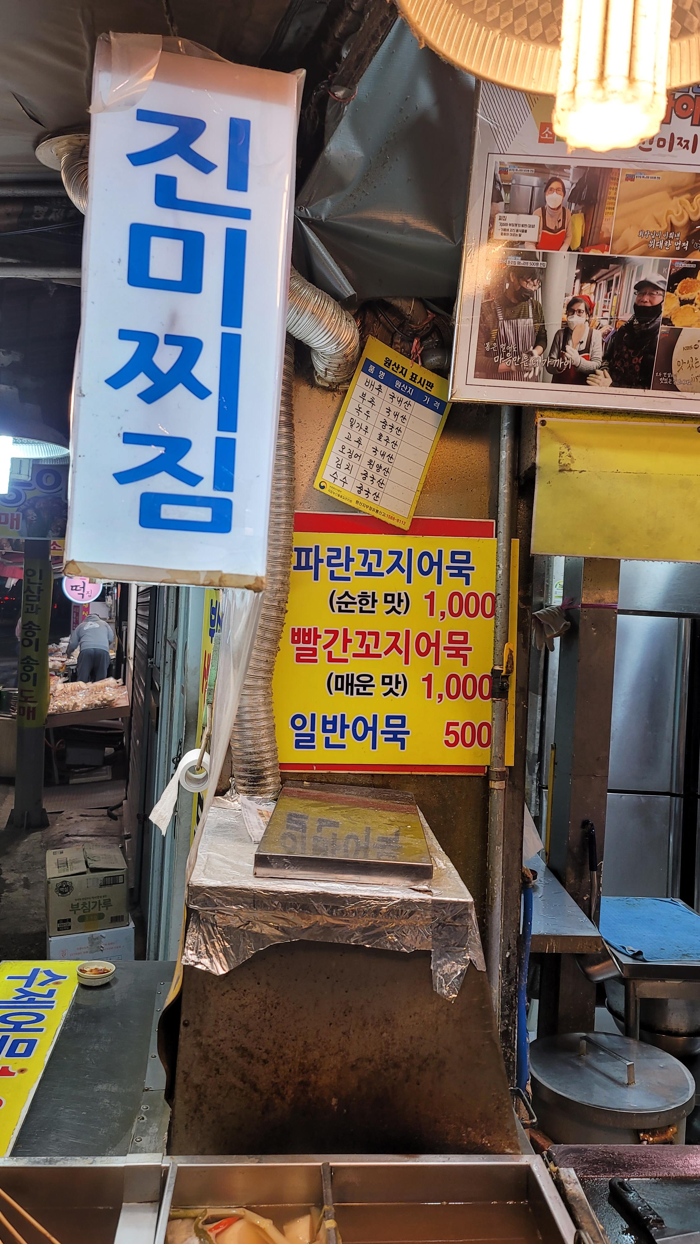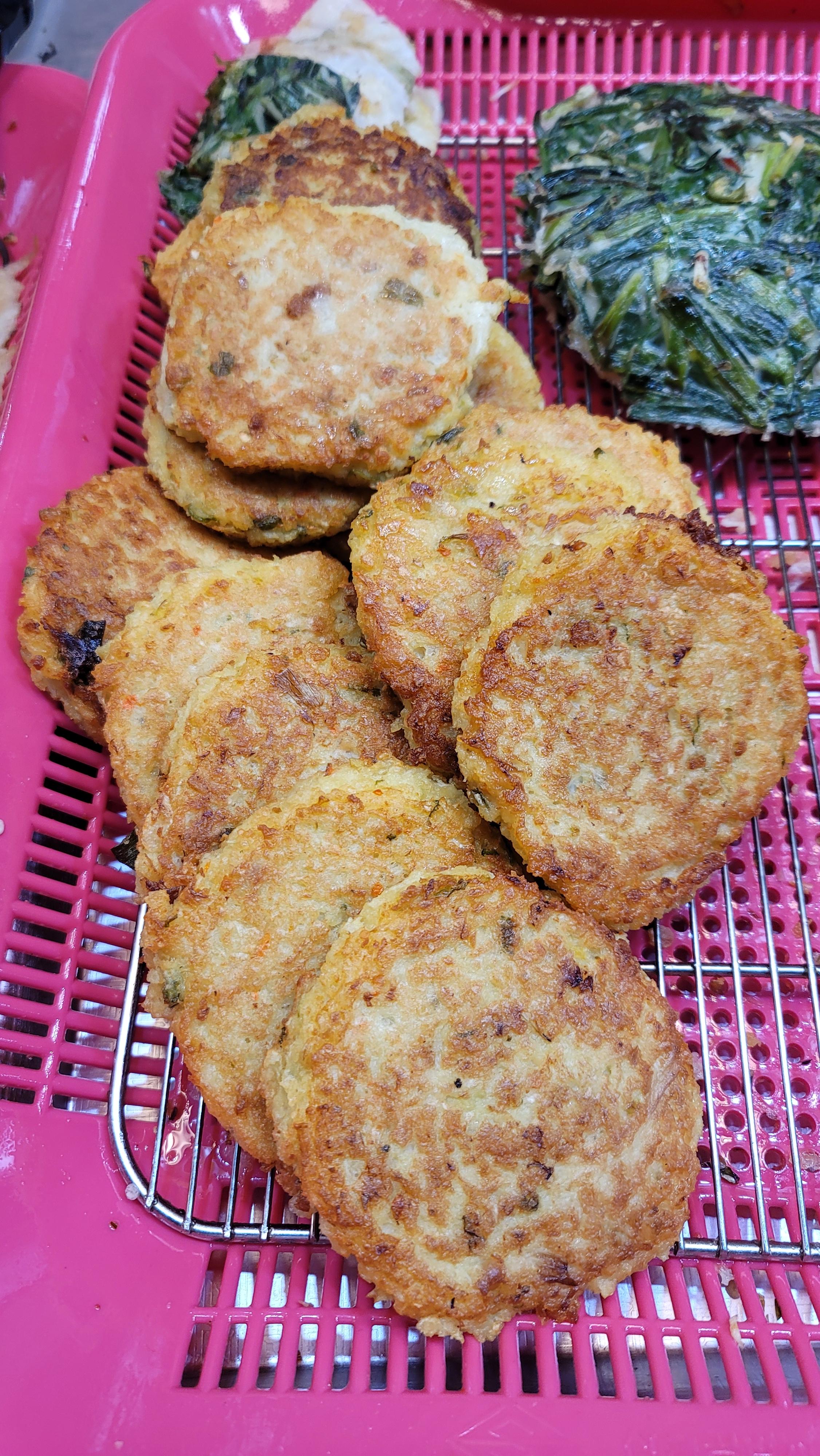 이곳에 맛집이 하나 있는데요 바로 염매시장 진미찌짐입니다. 빈대떡, 어묵, 배추전, 수수전, 정구지찌짐, 김치전 그리고 튀김 등을 파는 곳인데요 오가는 이들이 많이 들리는 곳입니다.