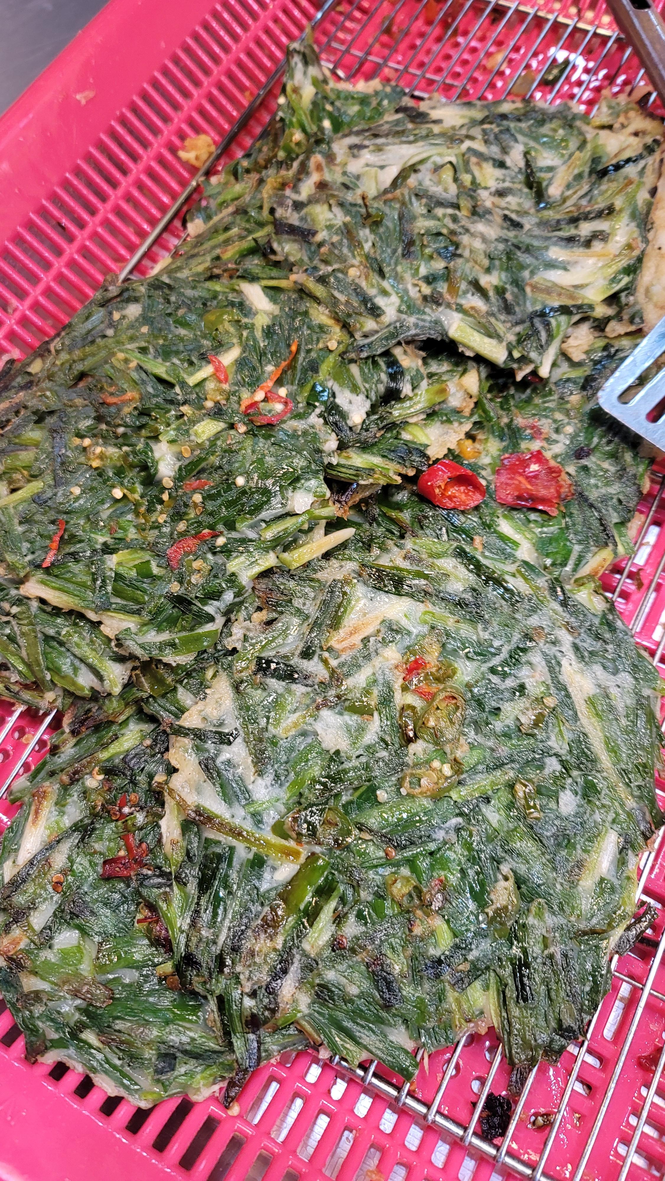 빈대떡이 입맞에 맞았는지 정구지찌짐 한 장을 더 추가했습니다. 그러더니 포장을 한다고 빈대떡 2장, 정구지찌짐 2장을 사더군요.