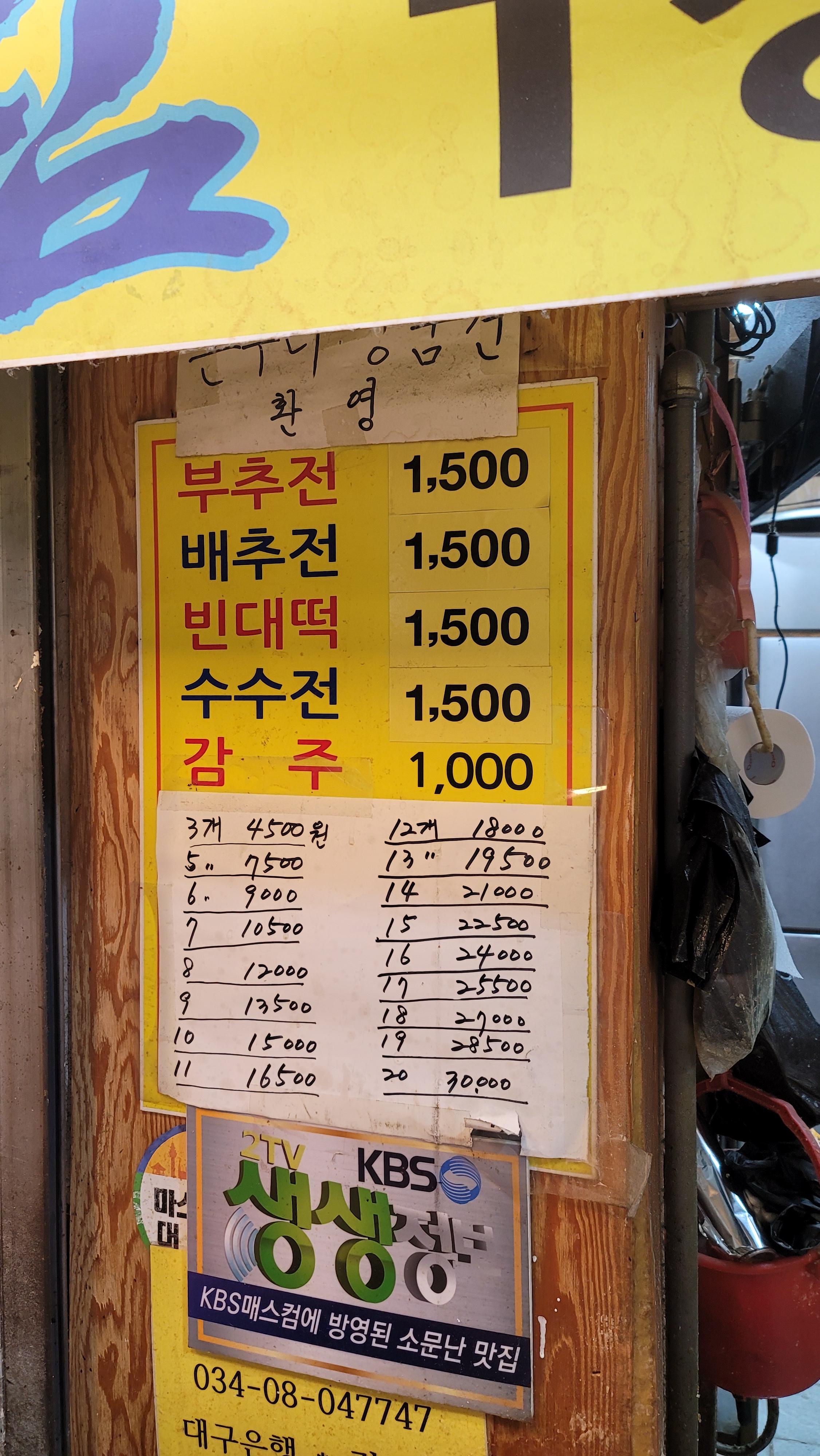 저는 한번씩 먹었던 곳이지만 친구는 처음이라 빈대떡 하나로 시작했습니다. 찌짐은 대부분 한 장에 1,500원입니다. 몇 장 먹은지 기억만 하면 계산은 아주쉽습니다.
