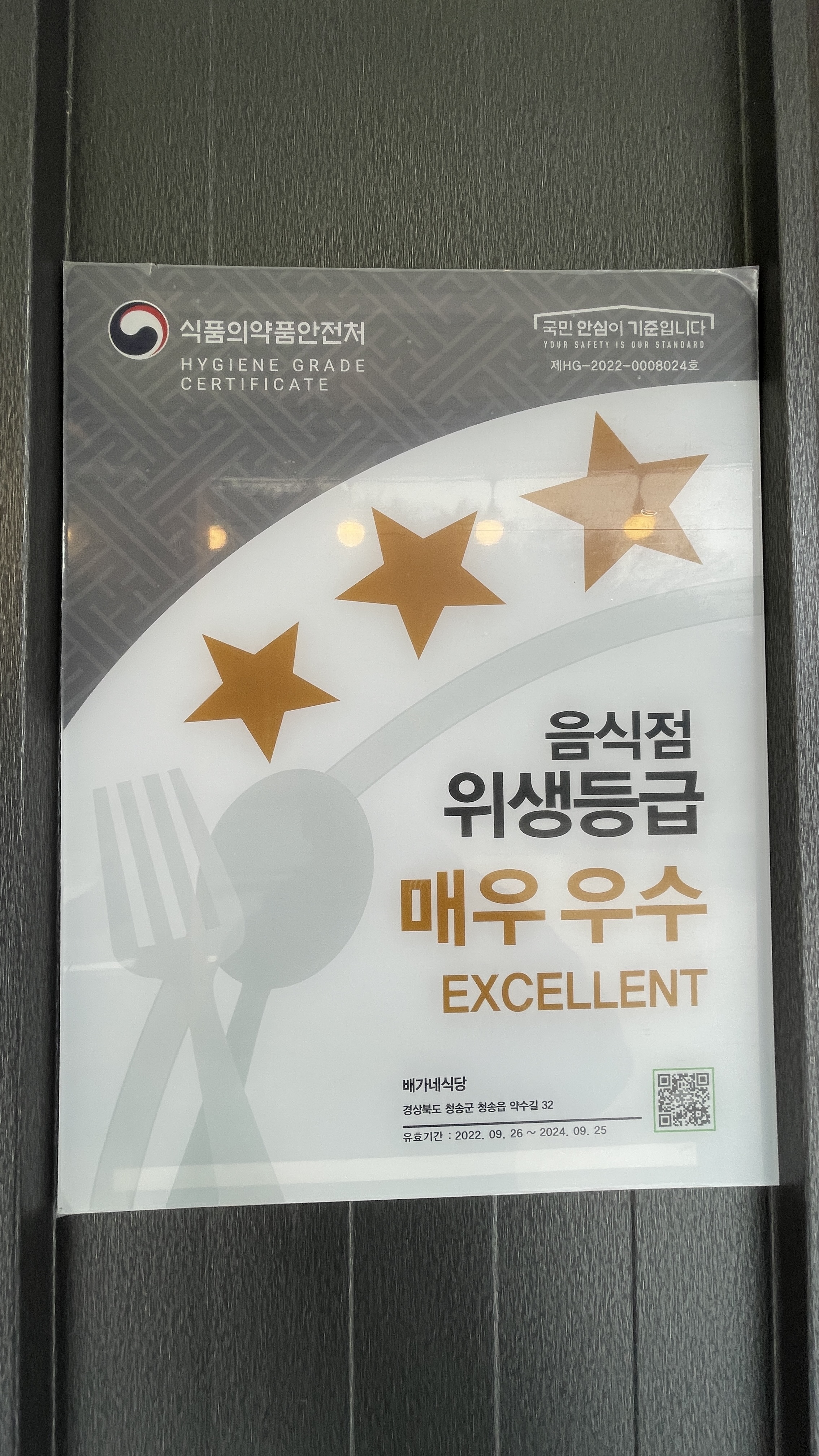 청송 배가네식당은 외관부터 실내까지 모두 깨끗했습니다. 그래서 음식점 위생등급도 "매우 우수"을 인정받았나 봅니다. 이발 배가네식당에서 메뉴 선택권은 없었습니다. 그냥 주는데로 먹었습니다. 도착하니 상이 이미 차려져 있었습니다.