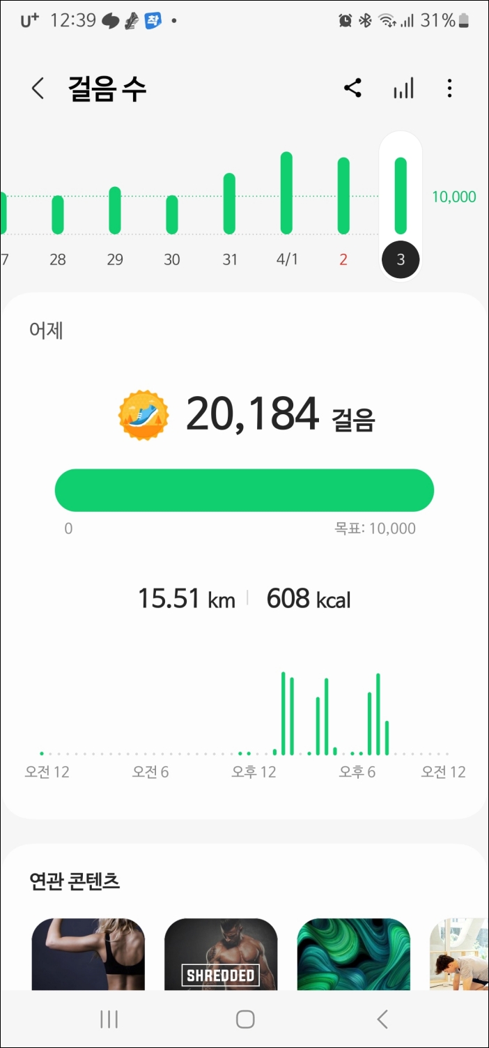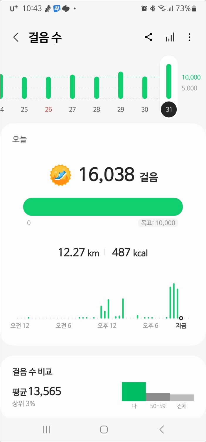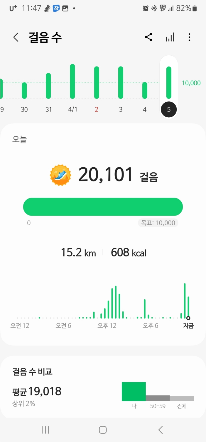동네를 걷고 있는데 매일 1만보 이상을 목표로 걷고 있습니다. 약 90일 정도 진행했는데 먹고 싶은 것은 다 먹으면서 진행하는 이상한 다이어트라서 체중 변화가 많지는 않습니다.