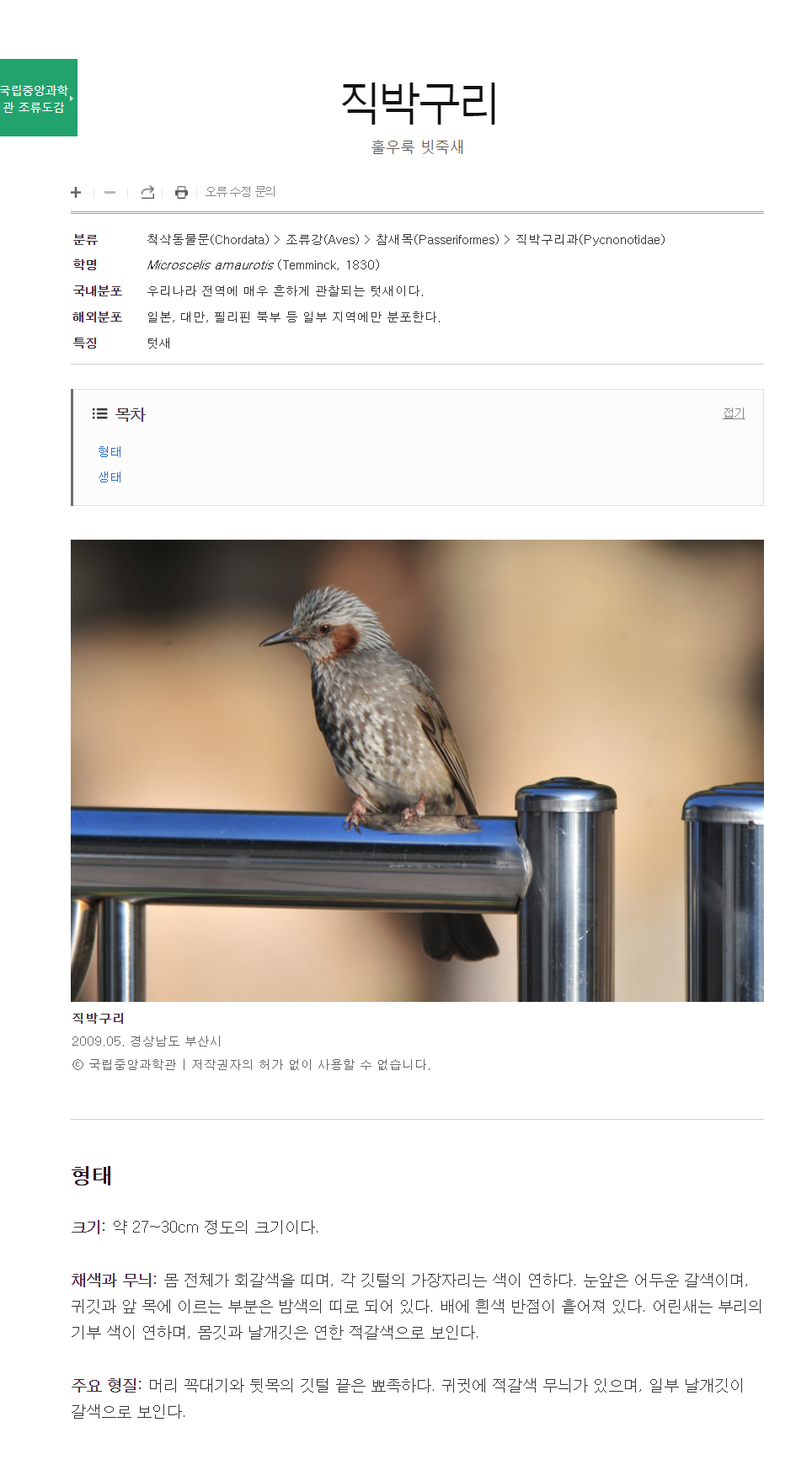 집에 와서 직박구리에 대해서 검색해봤더