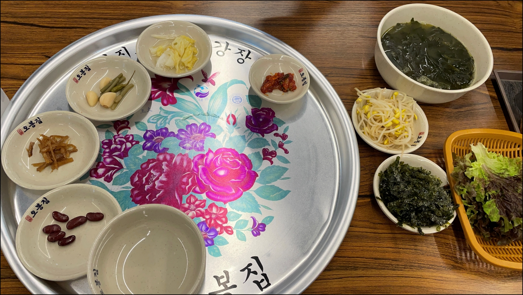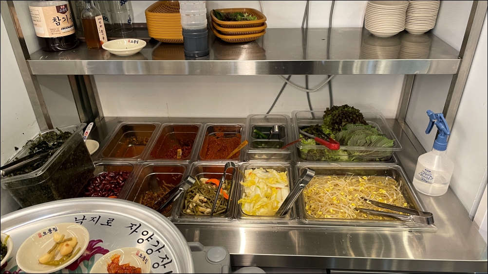 오봉집이라는 식당이름답게 오봉에 반찬을 가져오셔서 그대로 두시더군요.