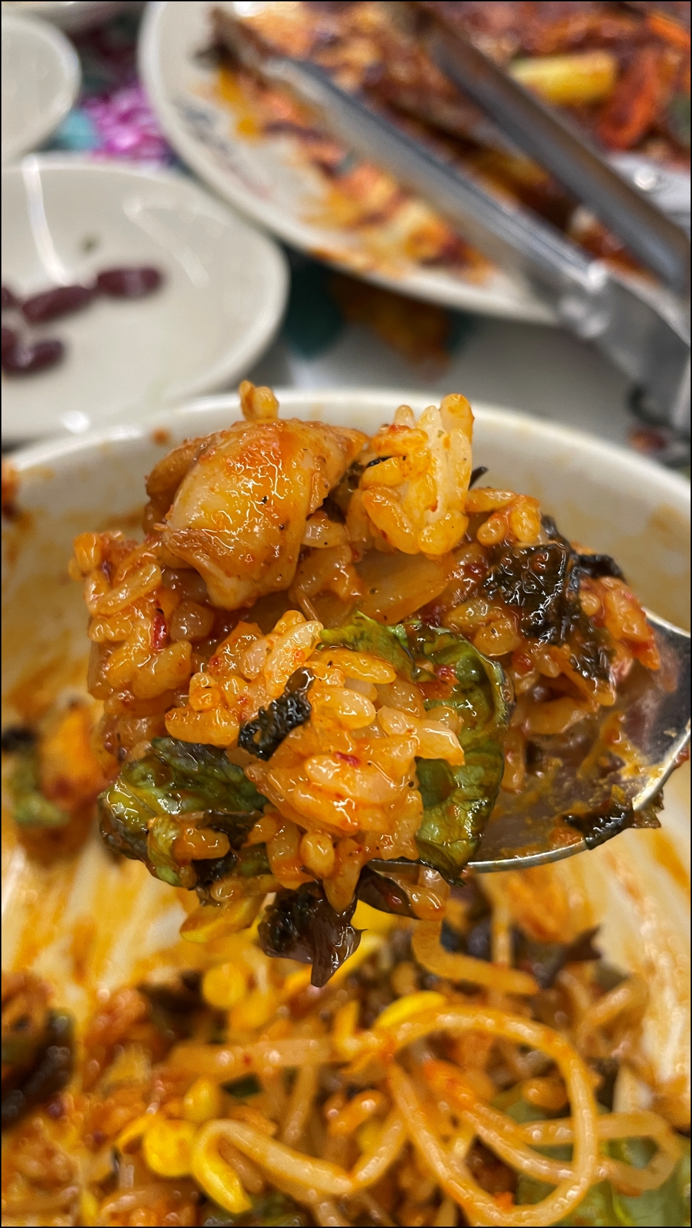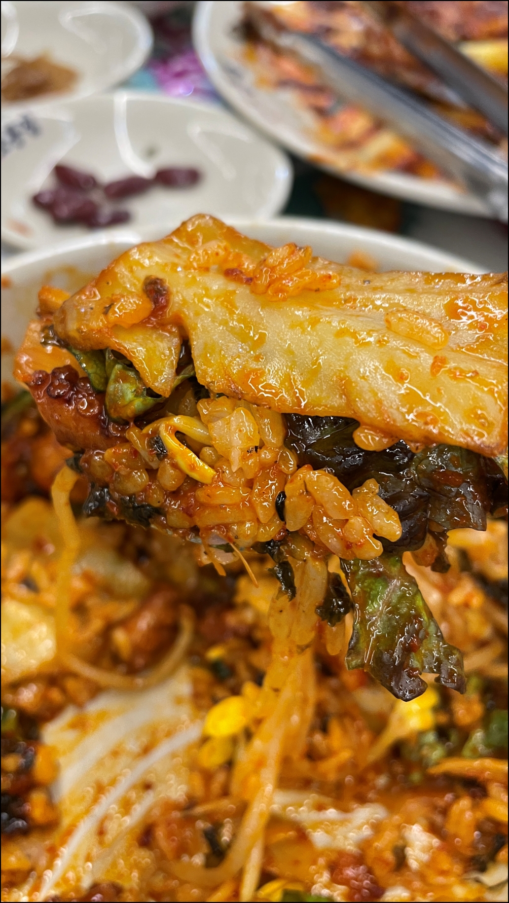 밥보다 낙지볶음과 콩나물, 상추 등이 더 많습니다.