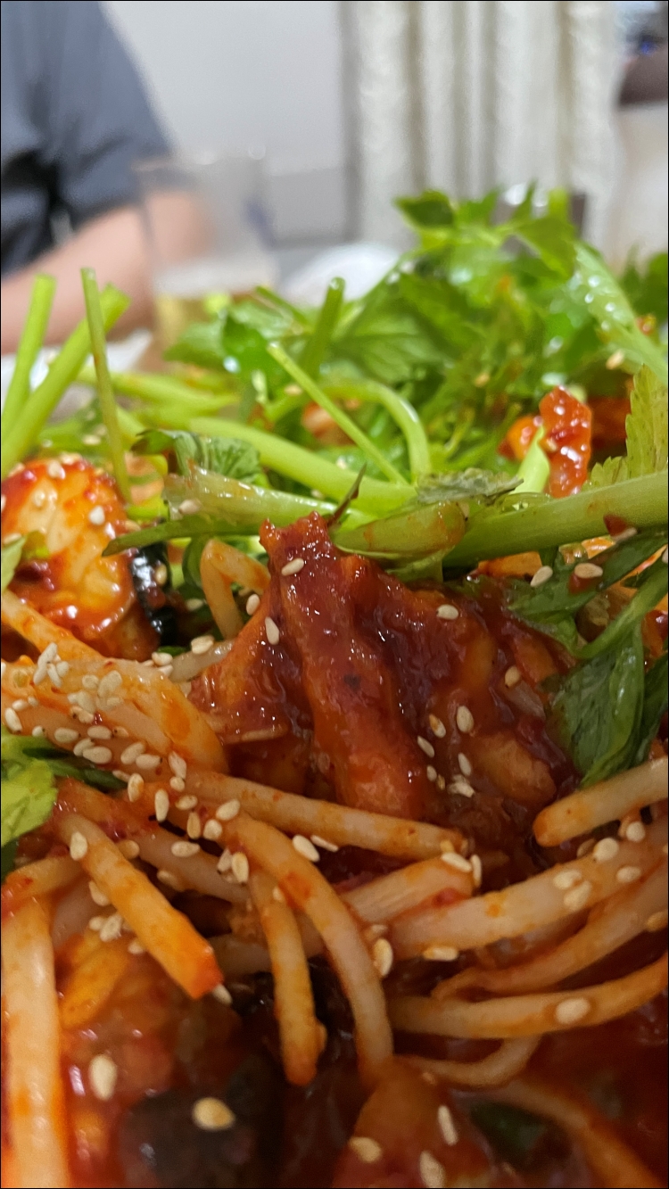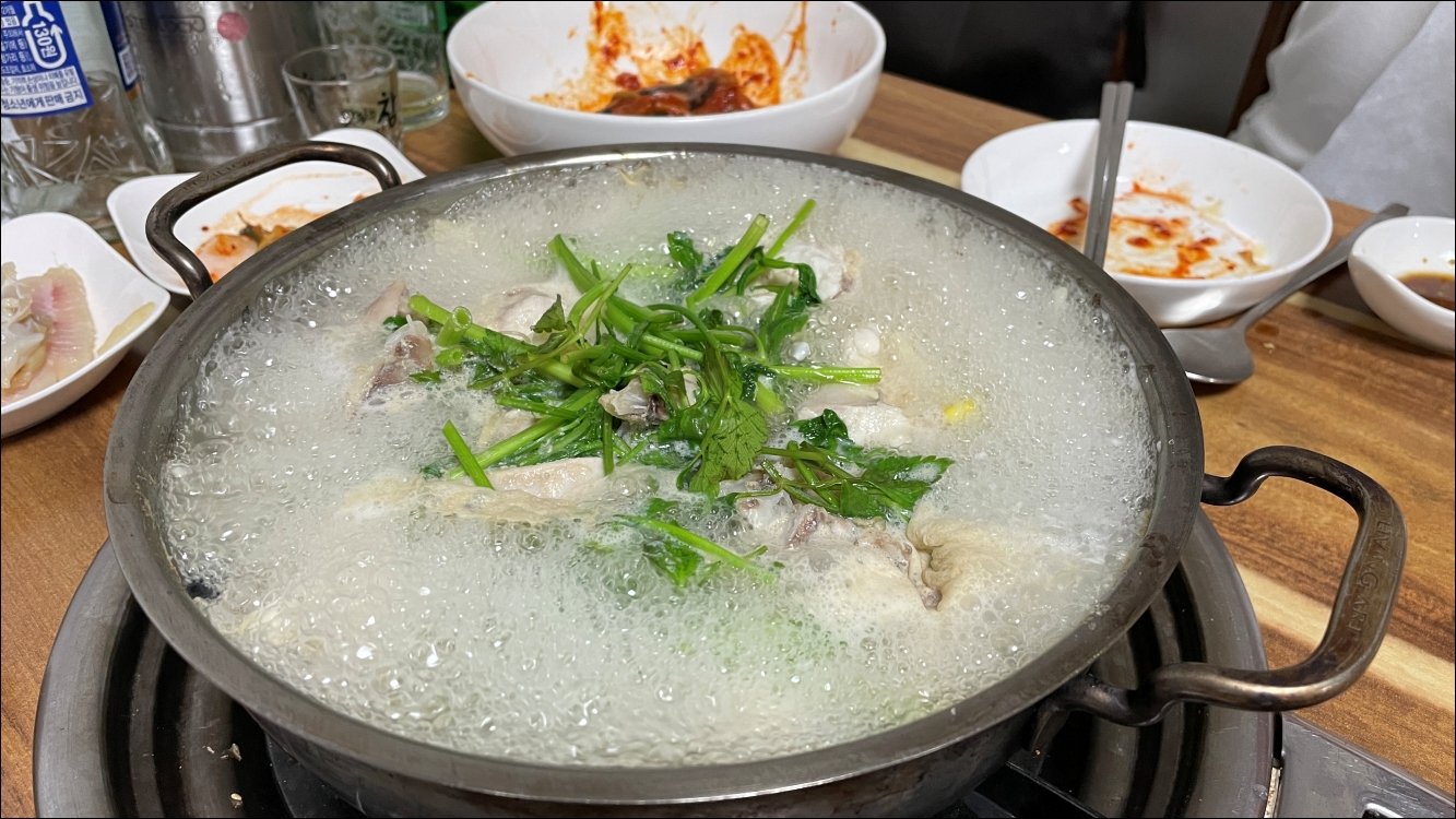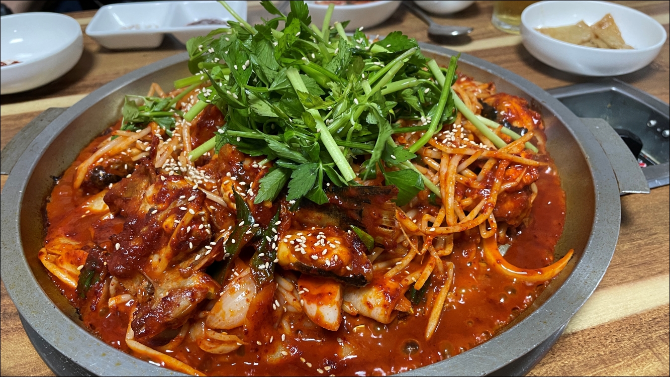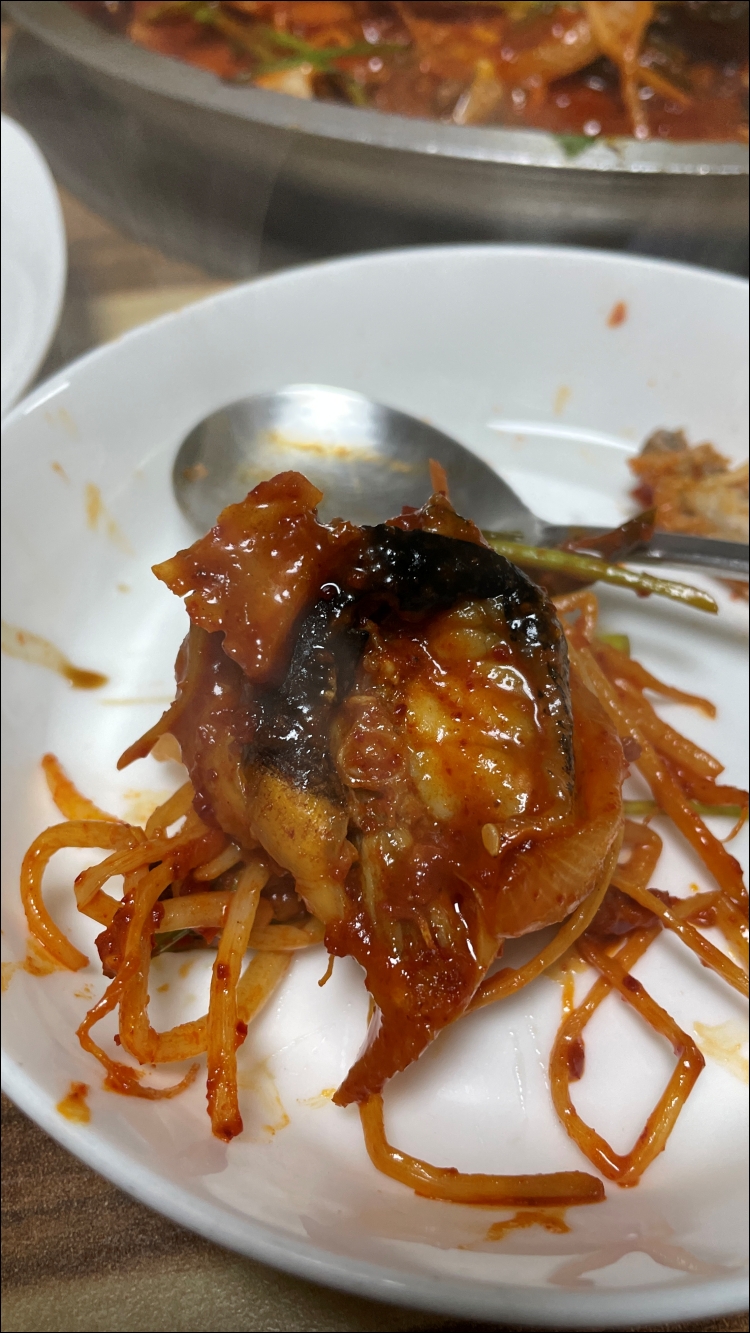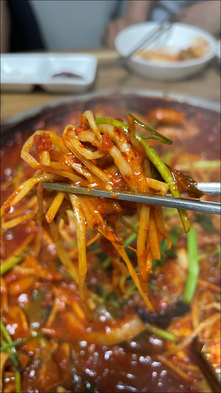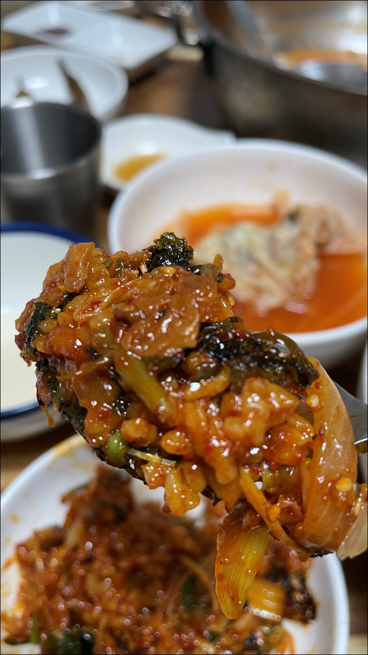 맛있더군요. 매콤한 양념, 콩나물 미나리와 함께 먹는 복어. 정말 맛있었습니다.