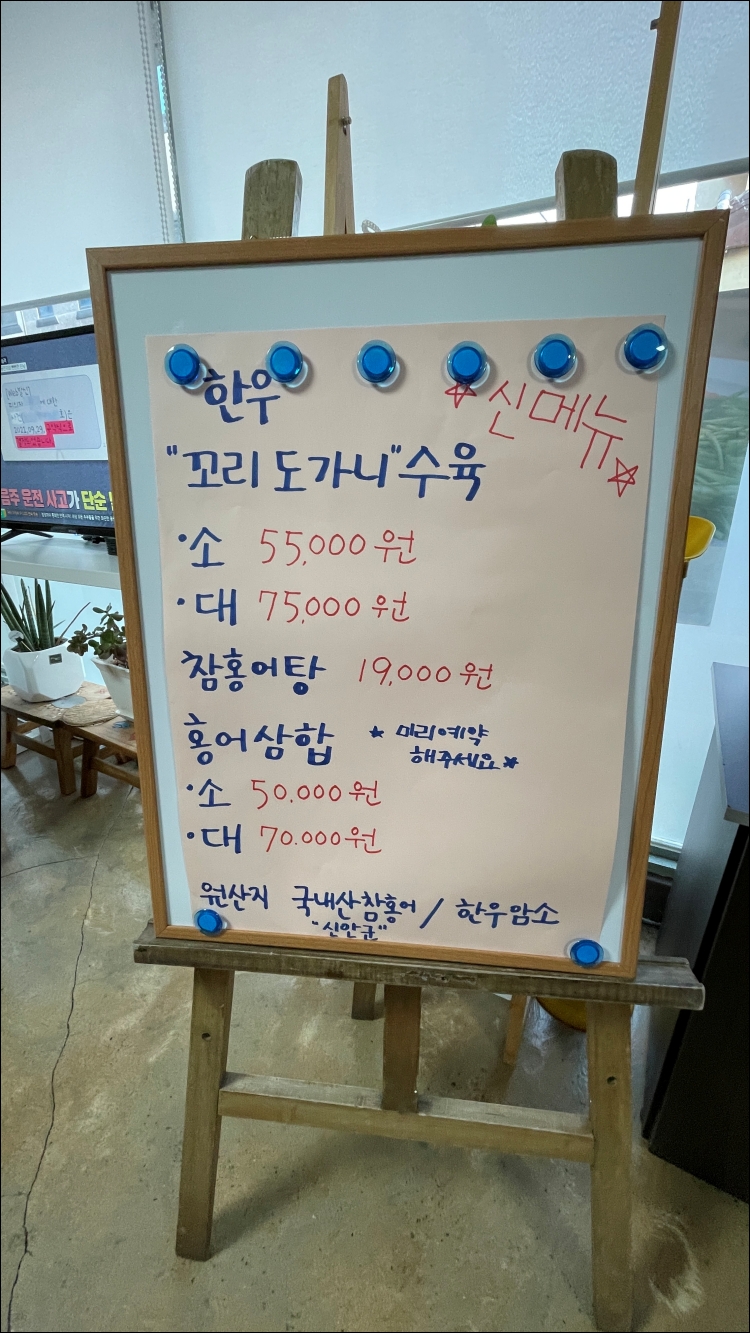 자리를 잡고 주문을 하는데 추천받은 꼬리 도가니수육은 아쉽게도 재료 소진이 되었다네요. 홍어삼합이 되는지 여쭤보니 기다려야 한답니다. 그래도 홍어 좋아하는 분들이 많아서 홍어삼합과 복어불고기를 주문했습니다.