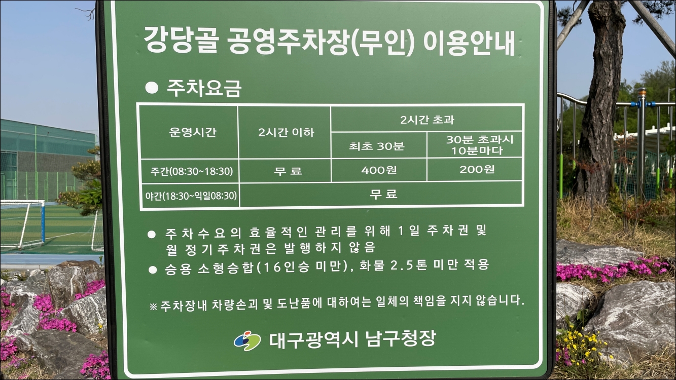 이상 남구구민체육광장에 위치한 강당골 공영주차장 이용안내 였습니다.
