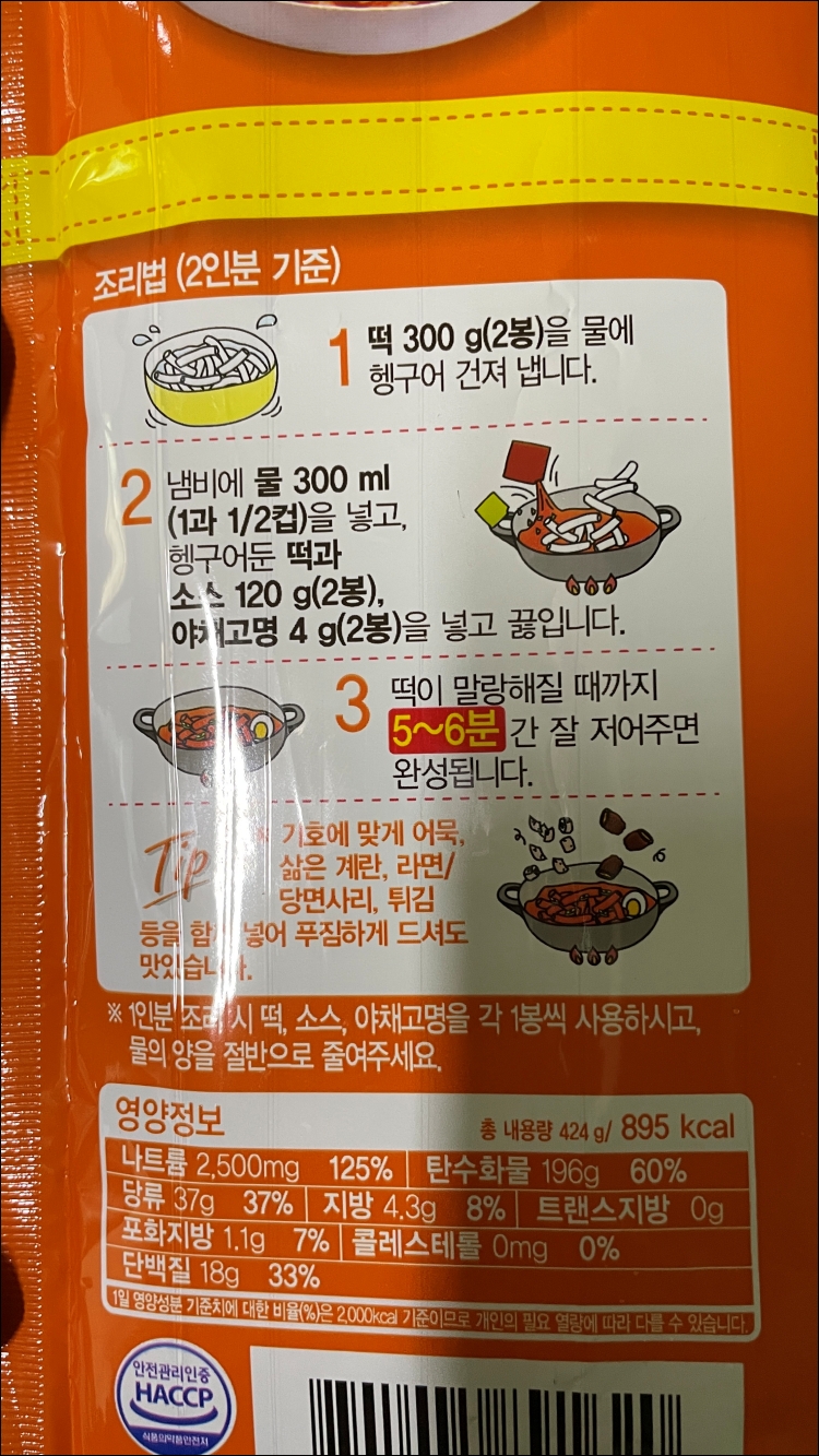 포장지 뒷면에는 친절하게 조리법이 기록되어 있다. 대충해도 된다. 대충해도 맛있게 되는 것이 떡볶이이니까. 단 물의 양은 잘 맞춰야 한다. 국물떡볶이의 생명은 국물이니까.