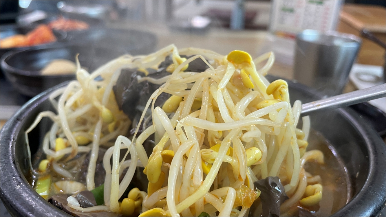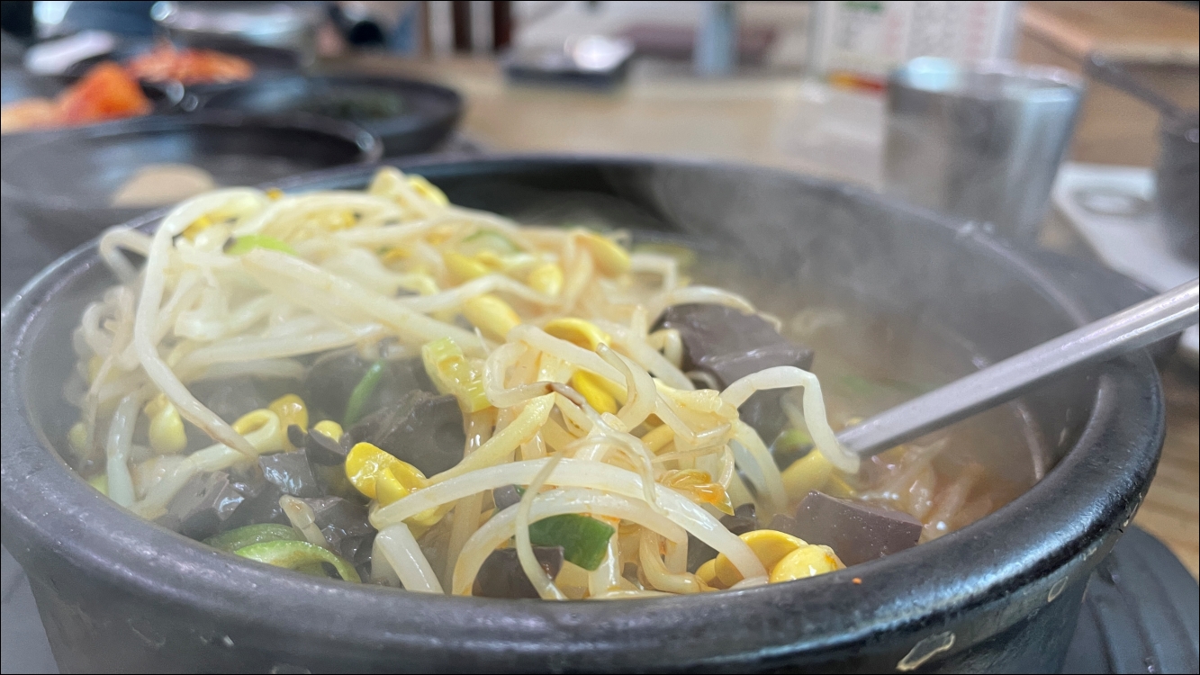 김이 확 올라오는 해장국계의 명품인 양평해장국 등장. 뜨거운 뚝배기에 끓는 모습이 전날 숙취를 없애 줄 것 같습니다. (사실 전날 집에서 혼술 했거든요. 소주 1병)