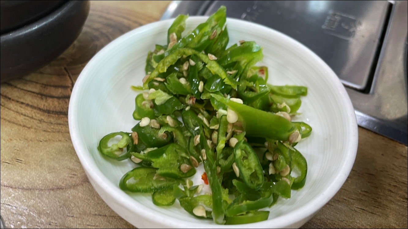 반찬은 3가지 + 2가지(김가루, 청양고추)가 나왔고요 리플코너가 있어서 부족한 반찬을 리필하시면 됩니다.