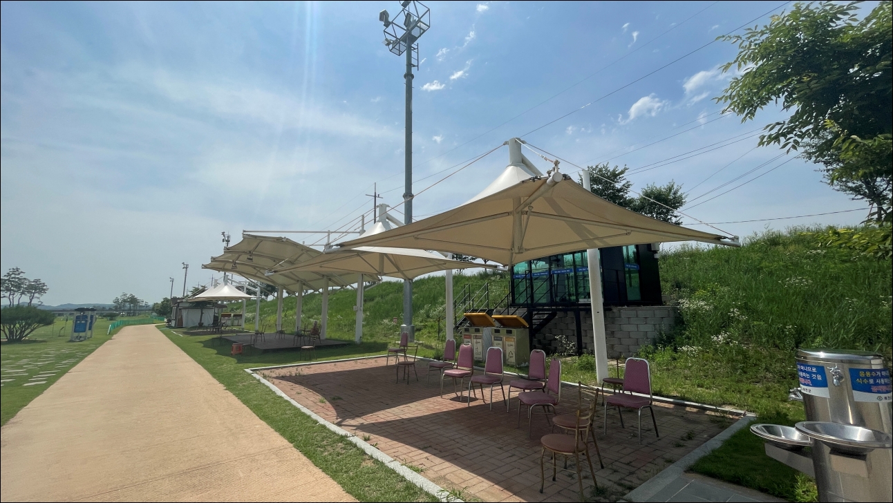 그러나, 각 클럽 회원분들이 직접 잔디 관리에 동참하는 등 예천한천파크골프장에 대한 사랑이 크다고 하시더군요. 그리고 한천파크골파장의 자랑거리가 있는데요. 바로 라이트(조명시설)입니다.