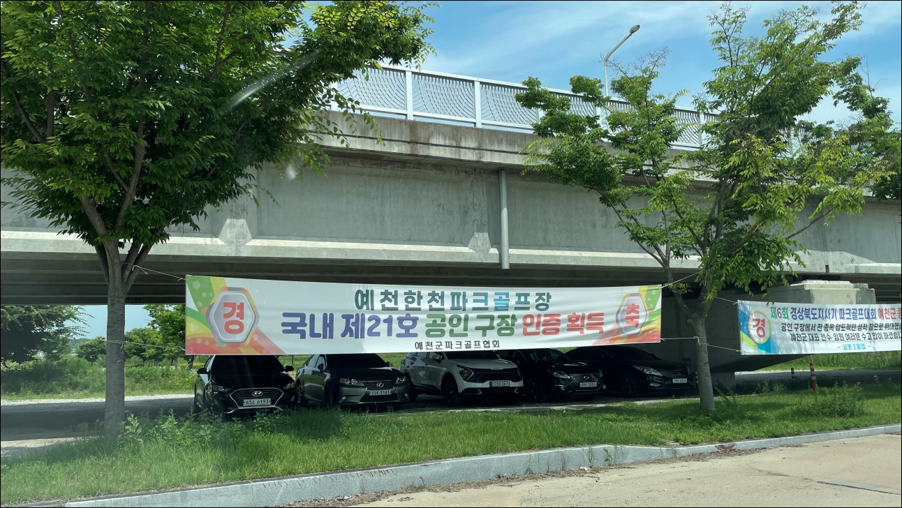 예천한천파크골프장은 예천시외버스터미널 또는 예천군청에서 자동차로 3~5분 이내 거리에 있었습니다. 예천IC에서는 약 10분 정도의 거리였고요.