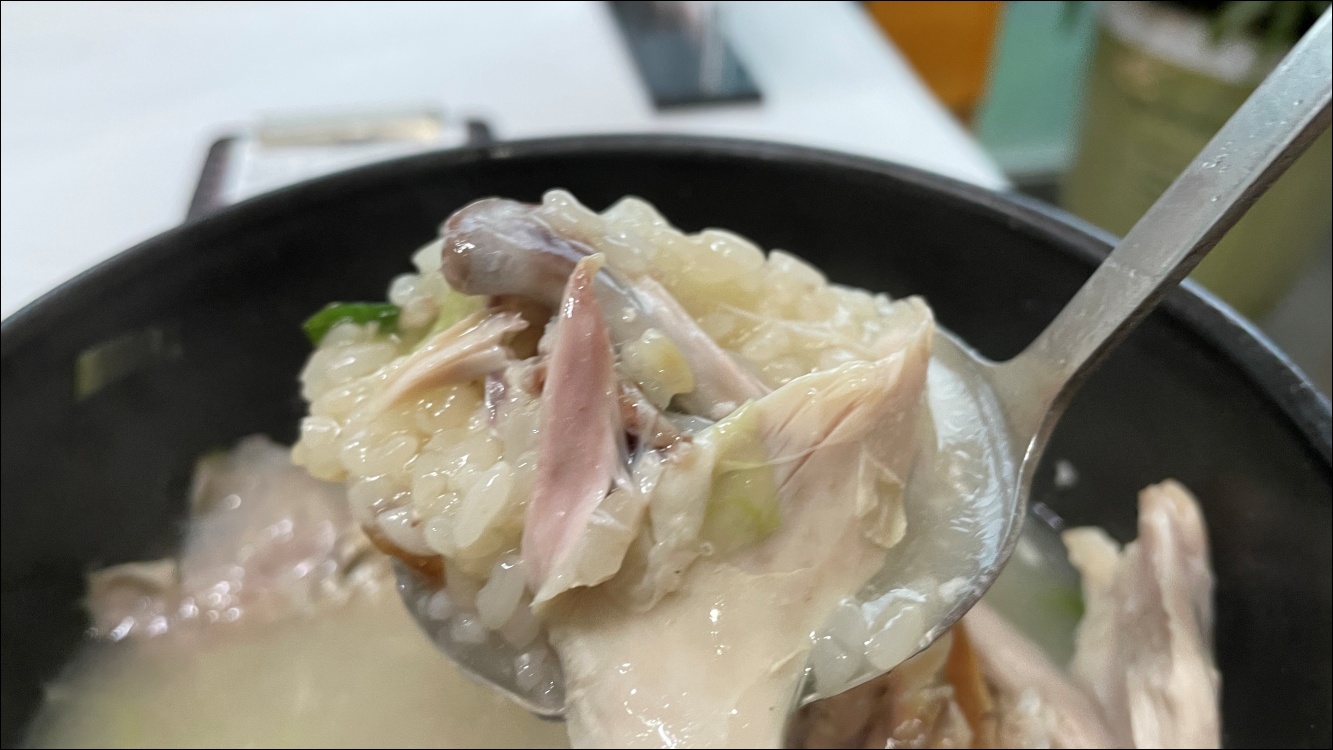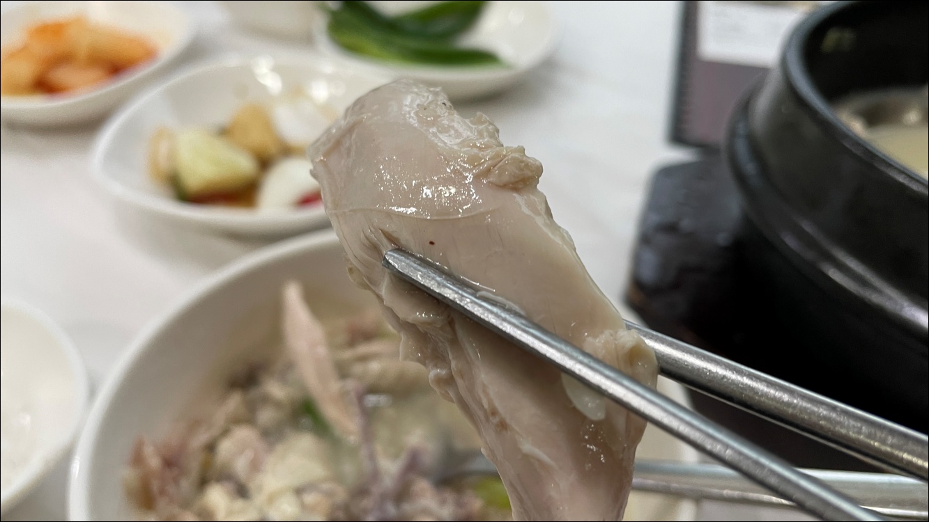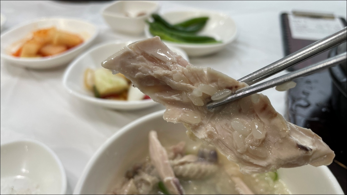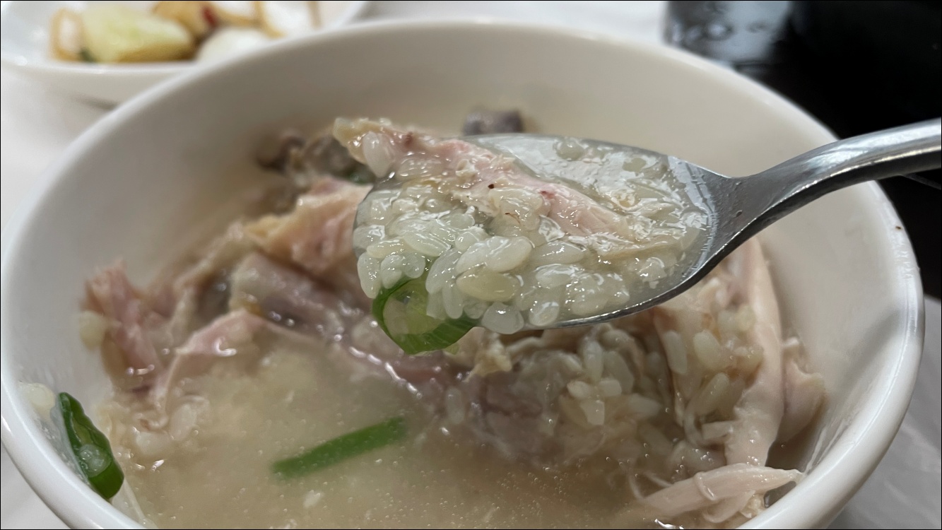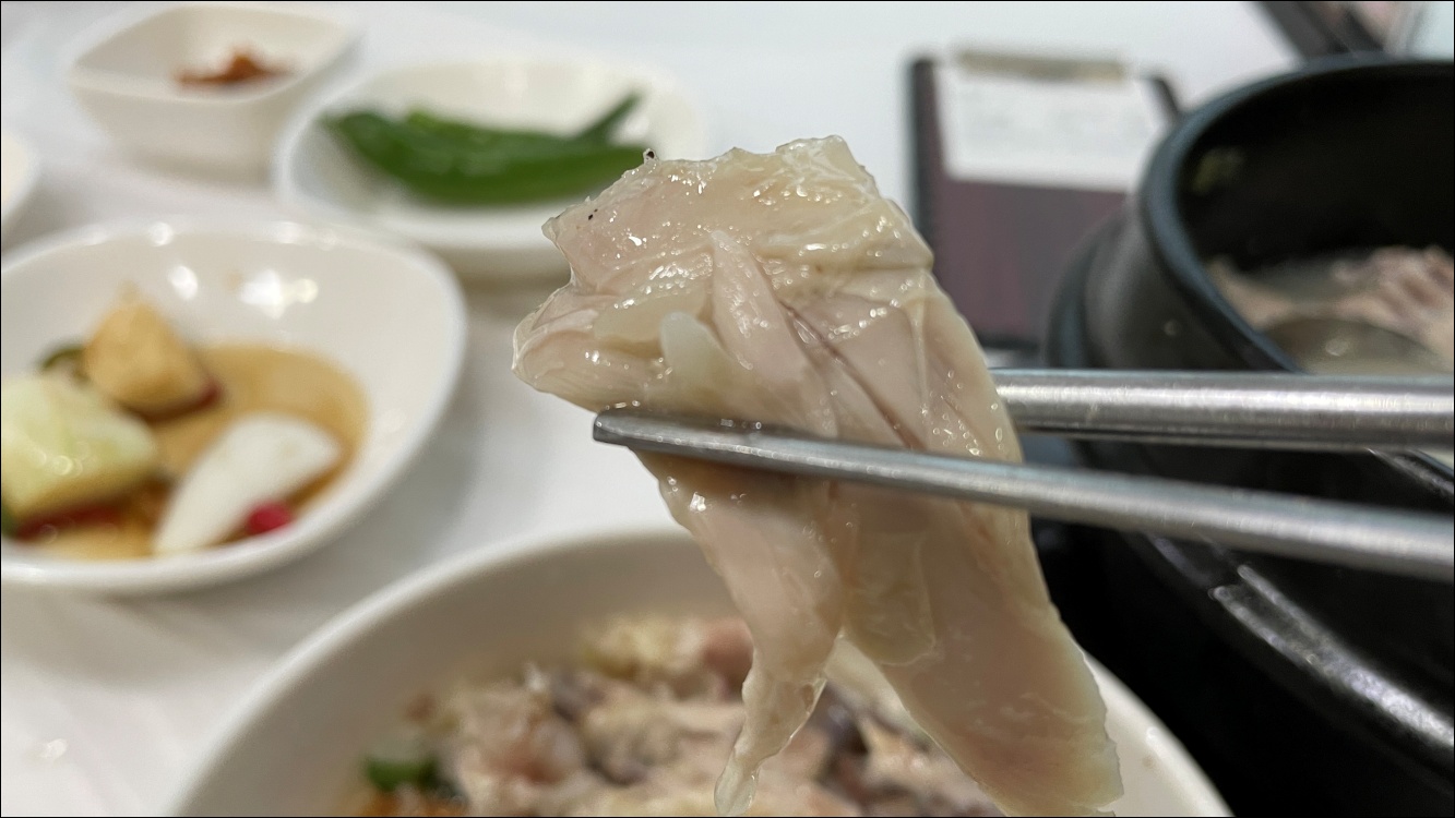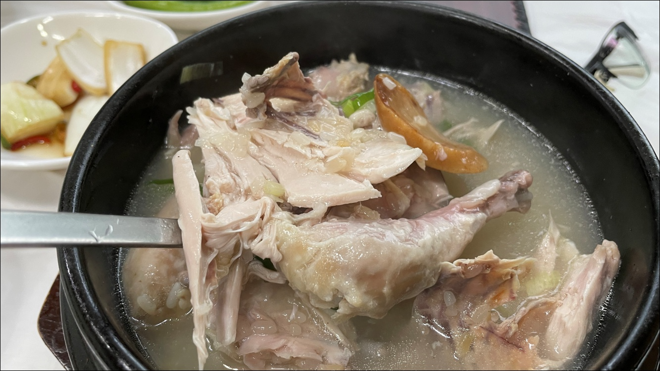 치킨도 잘 먹지 않는데 삼계탕 닭고기는 부드럽습니다.