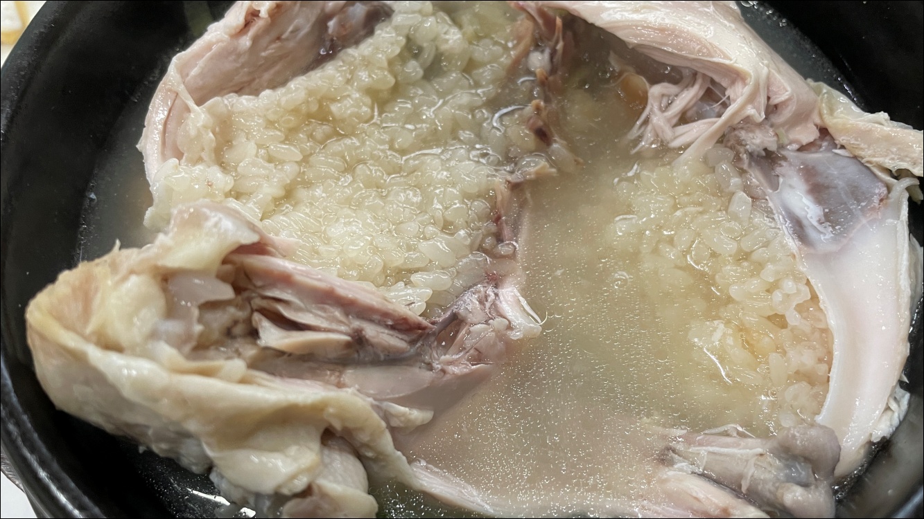 닭고기 안에 찹쌀이 찰지게 보였습니다.