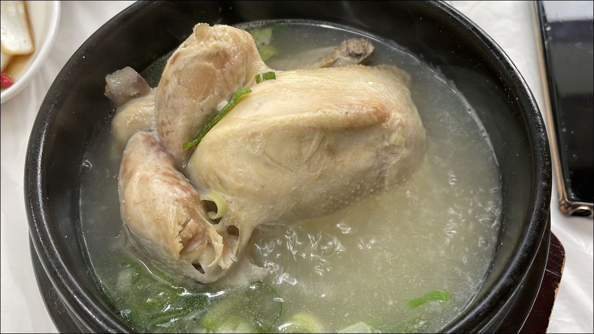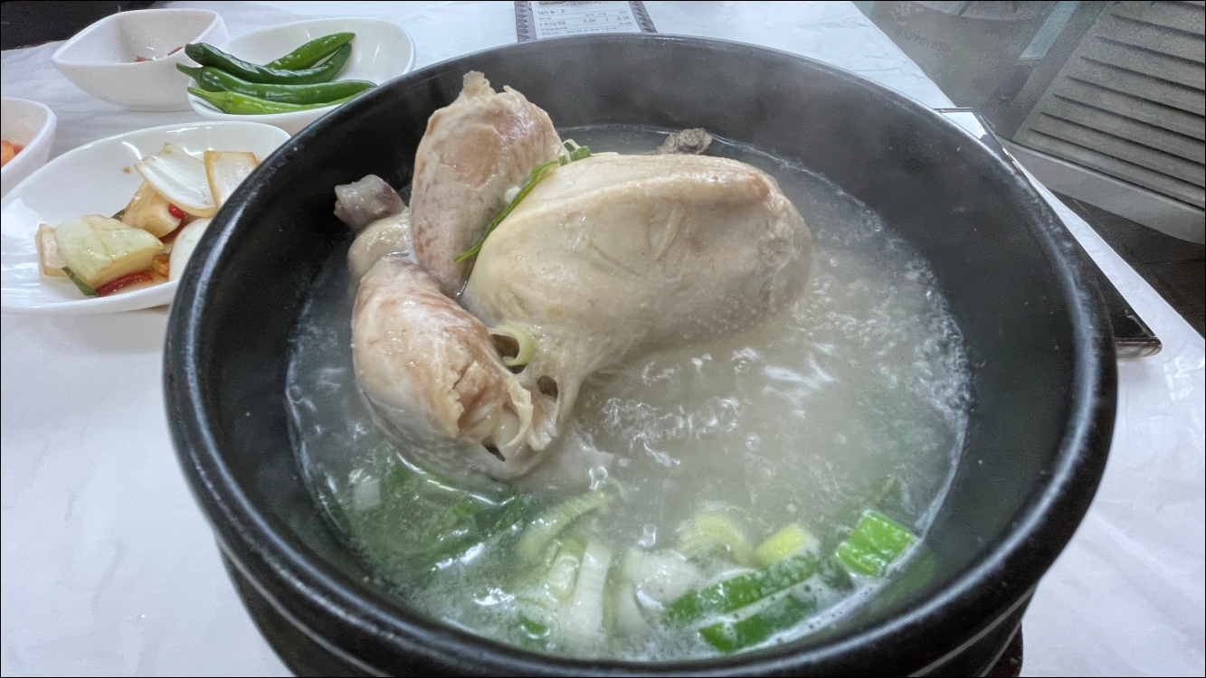 반찬이 세팅되고 나서 삼계탕이 나왔습니다.
