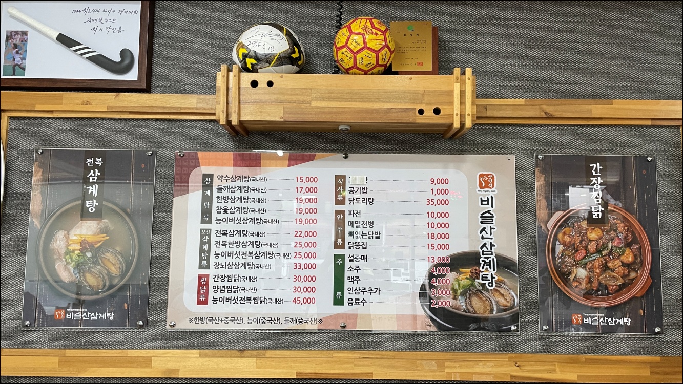 자리를 잡고 주문은 초간단. 삼계탕 두 그릇요~ 주문하고 보니 삼계탕 종류가 다양했습니다. 참옻삼계탕 좋지요. 옻닭국물이 위장에 그렇게 좋다고 하더군요. 선배가 사는 날이라서 어떤 삼계탕도 OK.