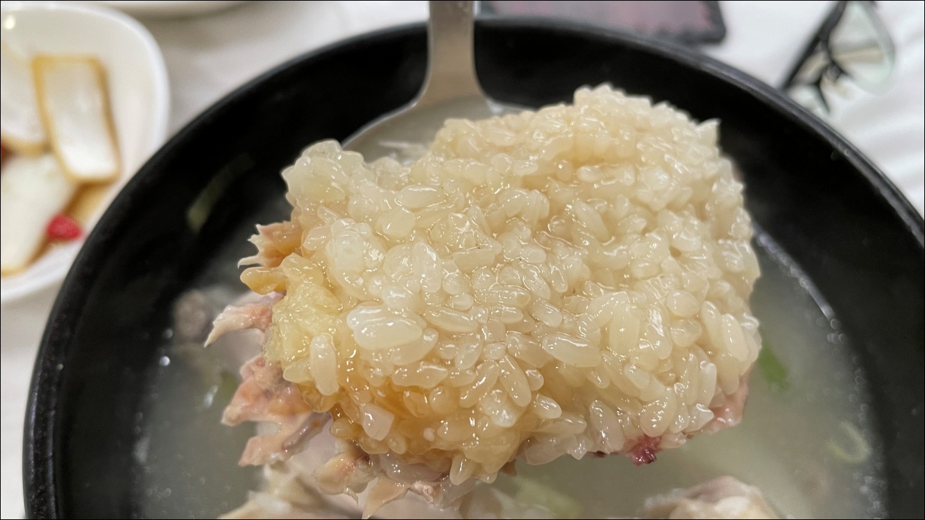 삼계탕 국물과 같이 먹으면 입에 착착 감기는 졸깃함과 구수한 맛이 일품