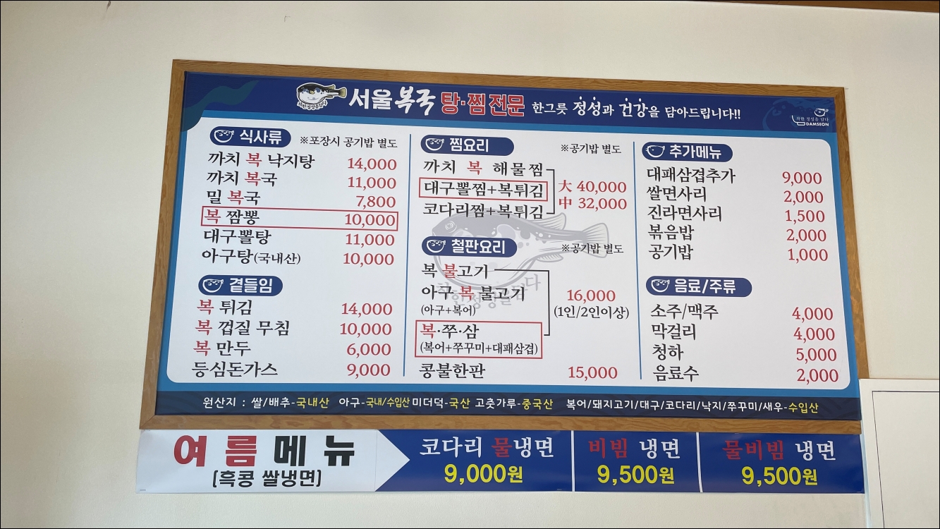 비산동 서울복국 메뉴