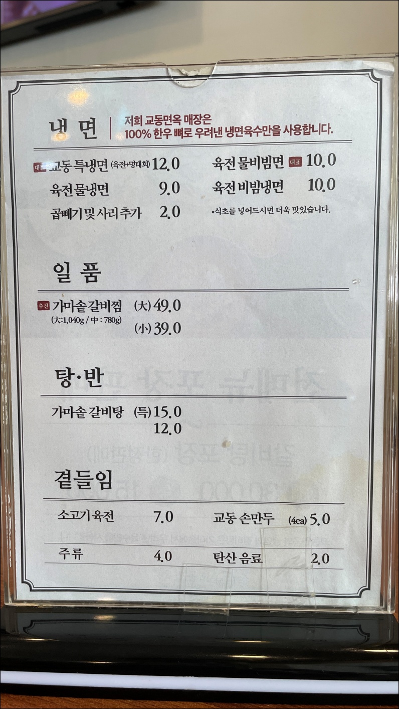 교동면옥 성서계명대점 메뉴