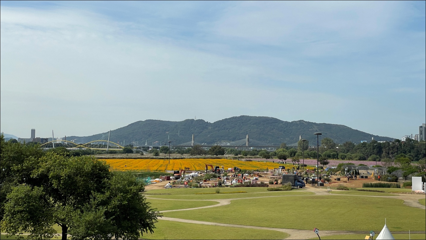 하중도 입구에는 대구수목원에서 국화를 전시를 위해 여러가지 조형물을 세우고 있었습니다. 10월 말이면 코스모스와 더불어 국화도 감상할 수 있을 것 같더군요.