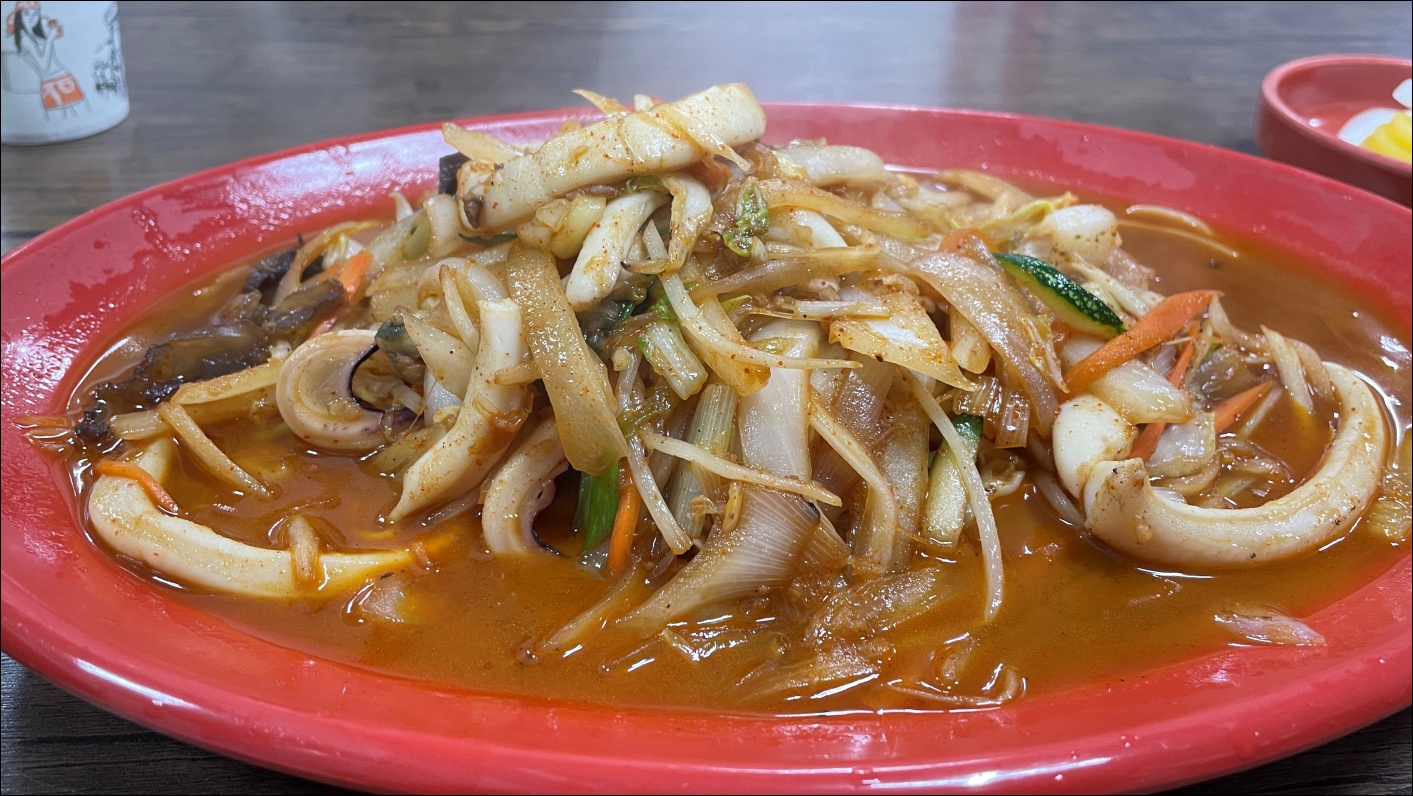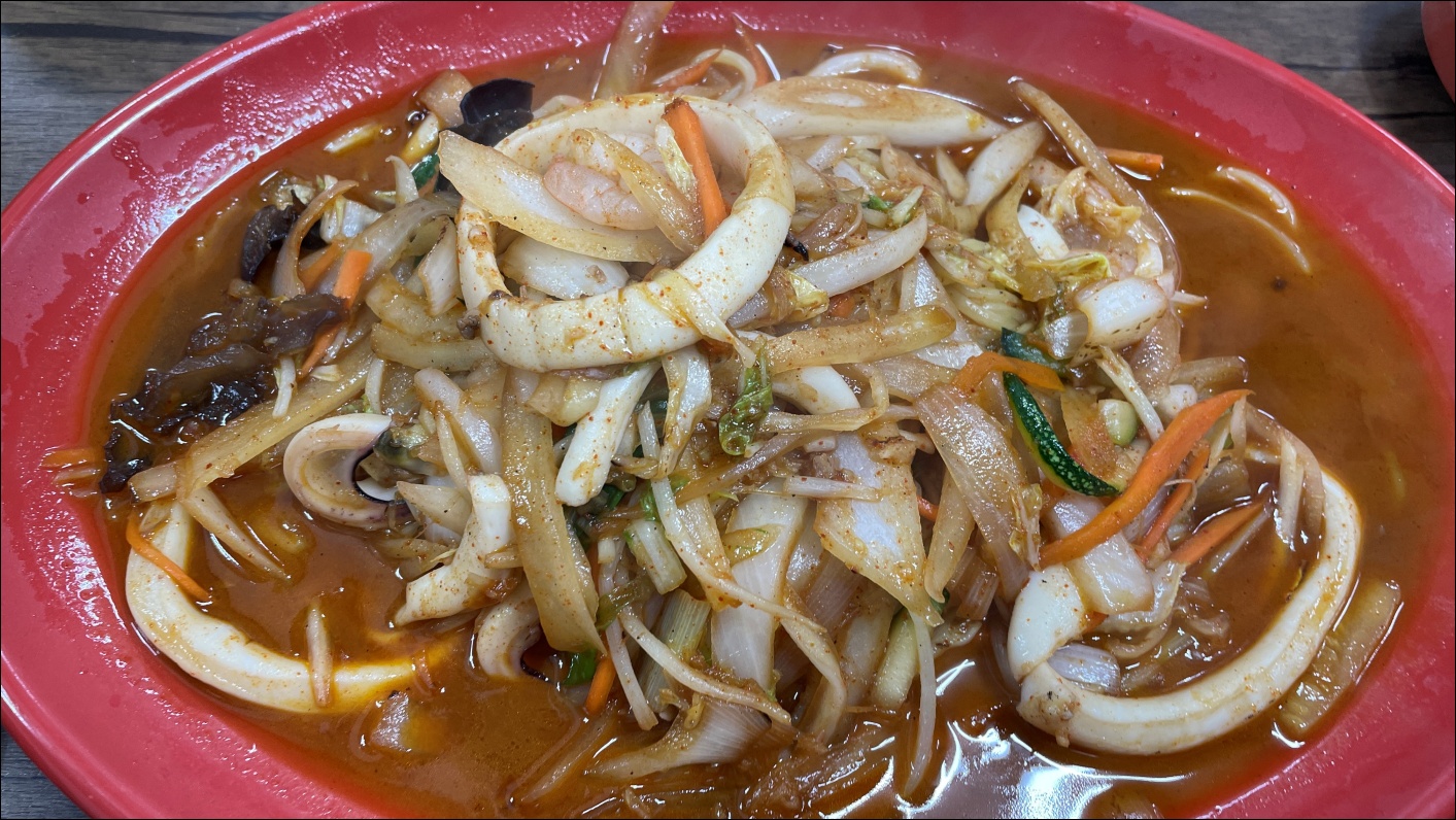 이미 먹어봐서 그 맛을 알기에 군침이 돕니다. 면도 많고 오징어도 크게 썰어서 들어가 있습니다.