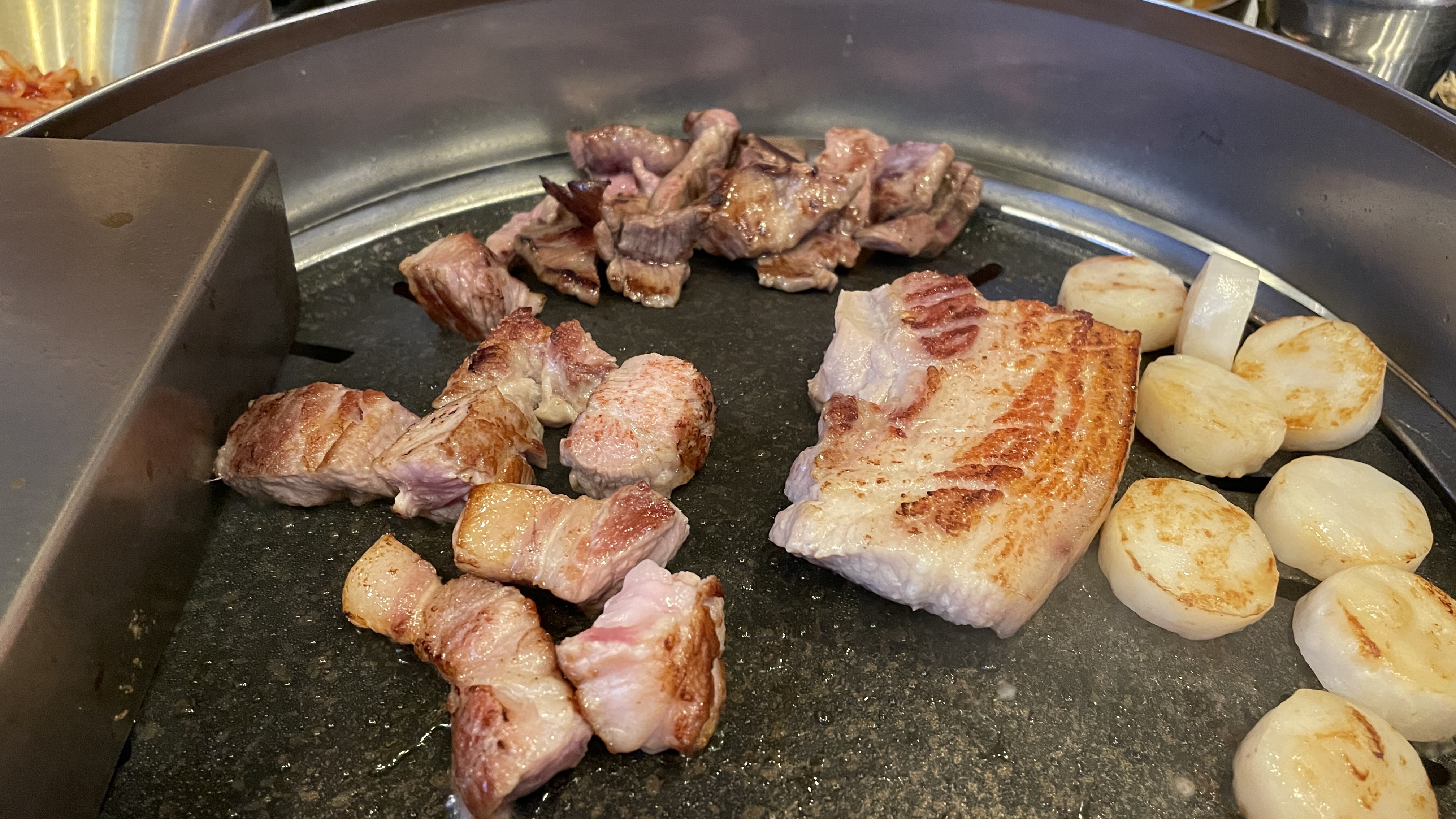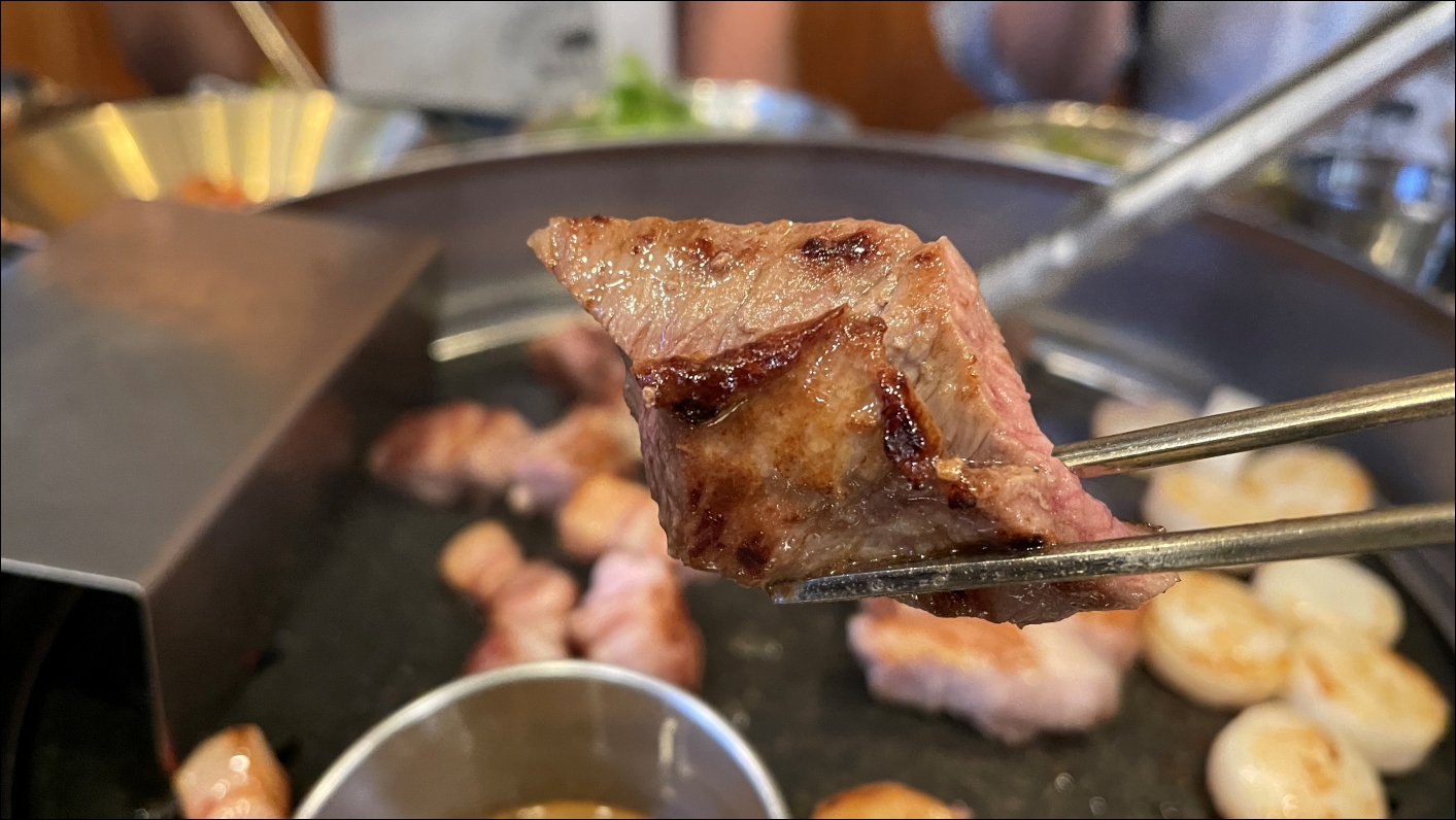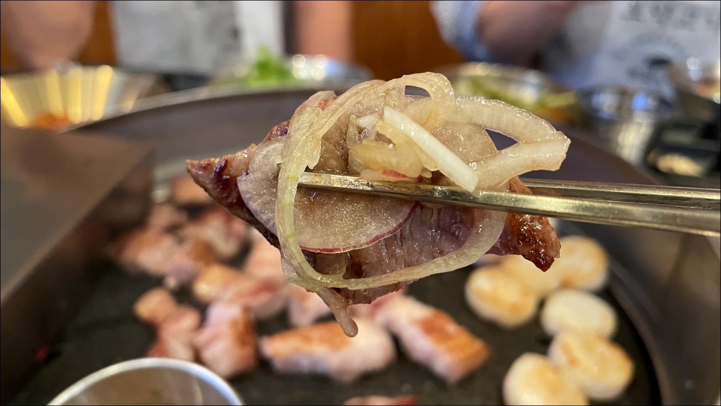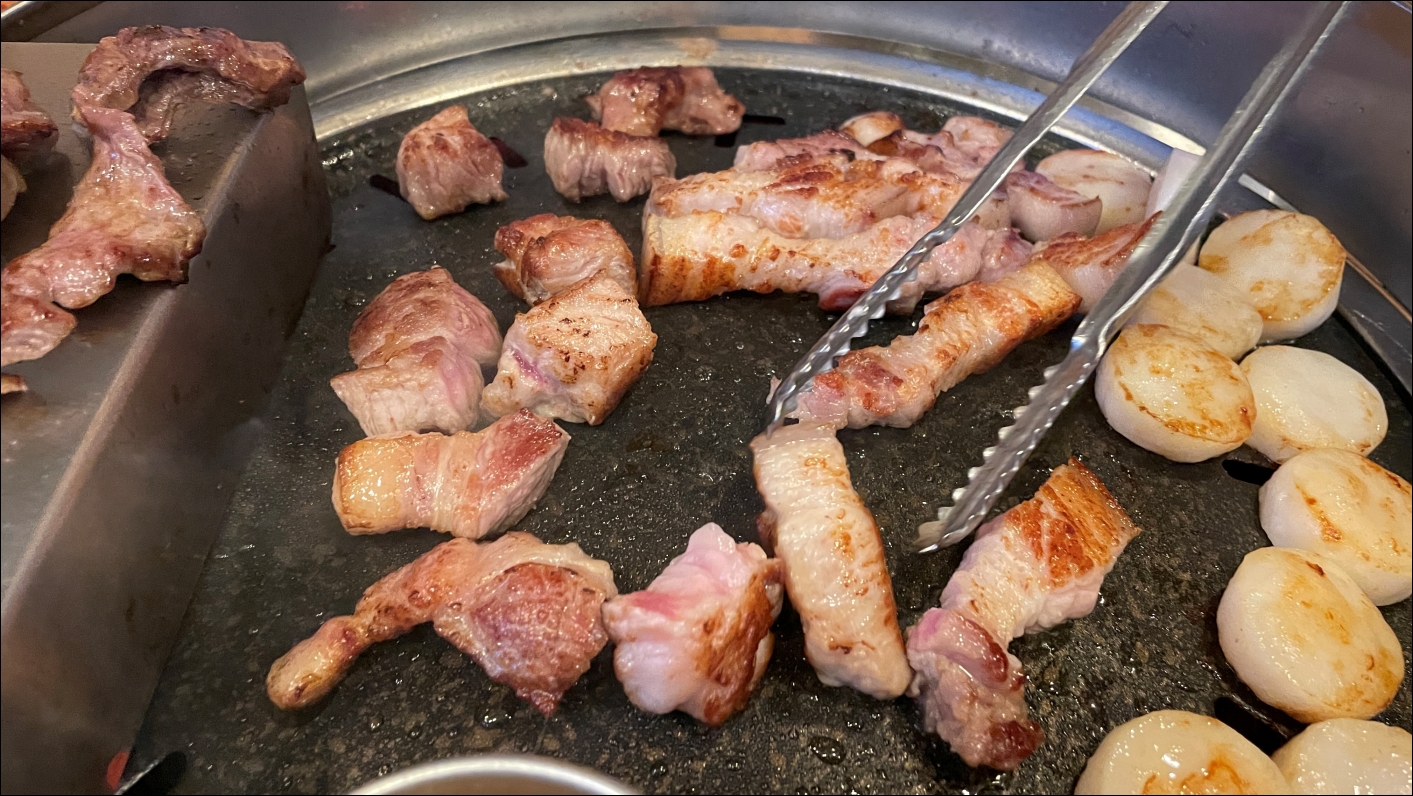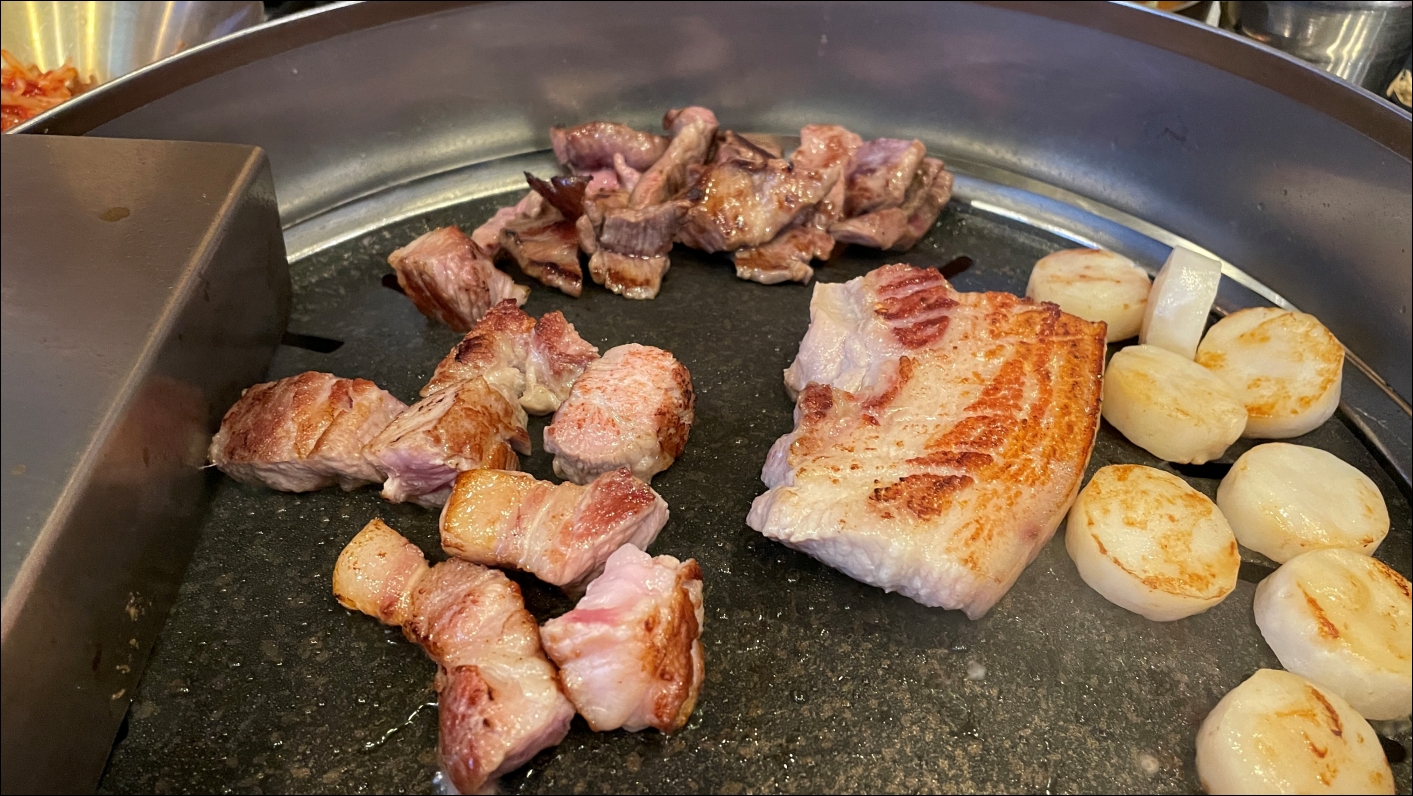 평소같으면 제가 고기를 굽겠다고 했겠지만, 돈모닝에서는 이모님들이 모두 구워주셔서 가만히 먹기만 했습니다. 친구들과 이야기하면서 먹으면 끝. 돈모닝 이모님들 친철하게 잘 구워주시더군요.