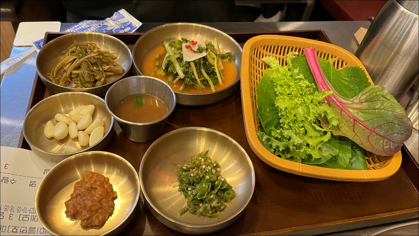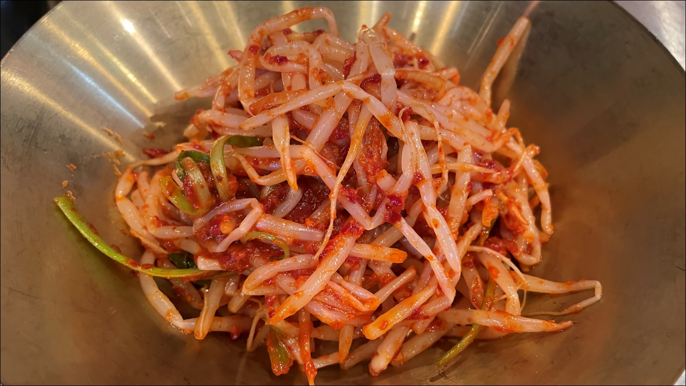 반찬이 세팅되고 겉절이와 콩나물 무침이 나왔습니다. 콩나물 무침이 예술이었습니다. 아삭한 식감을 그대로 가지고 있었는데 제 입맛에는 딱 맞았습니다. (아삭한 식감이 오히려 호불호가 있을 수 있음)