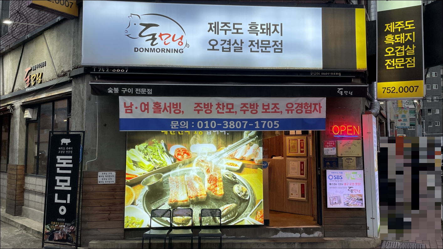 친구 회사 부근에 있는 제주 흑돼지 전문점인 돈모닝 상동점으로 갔습니다.