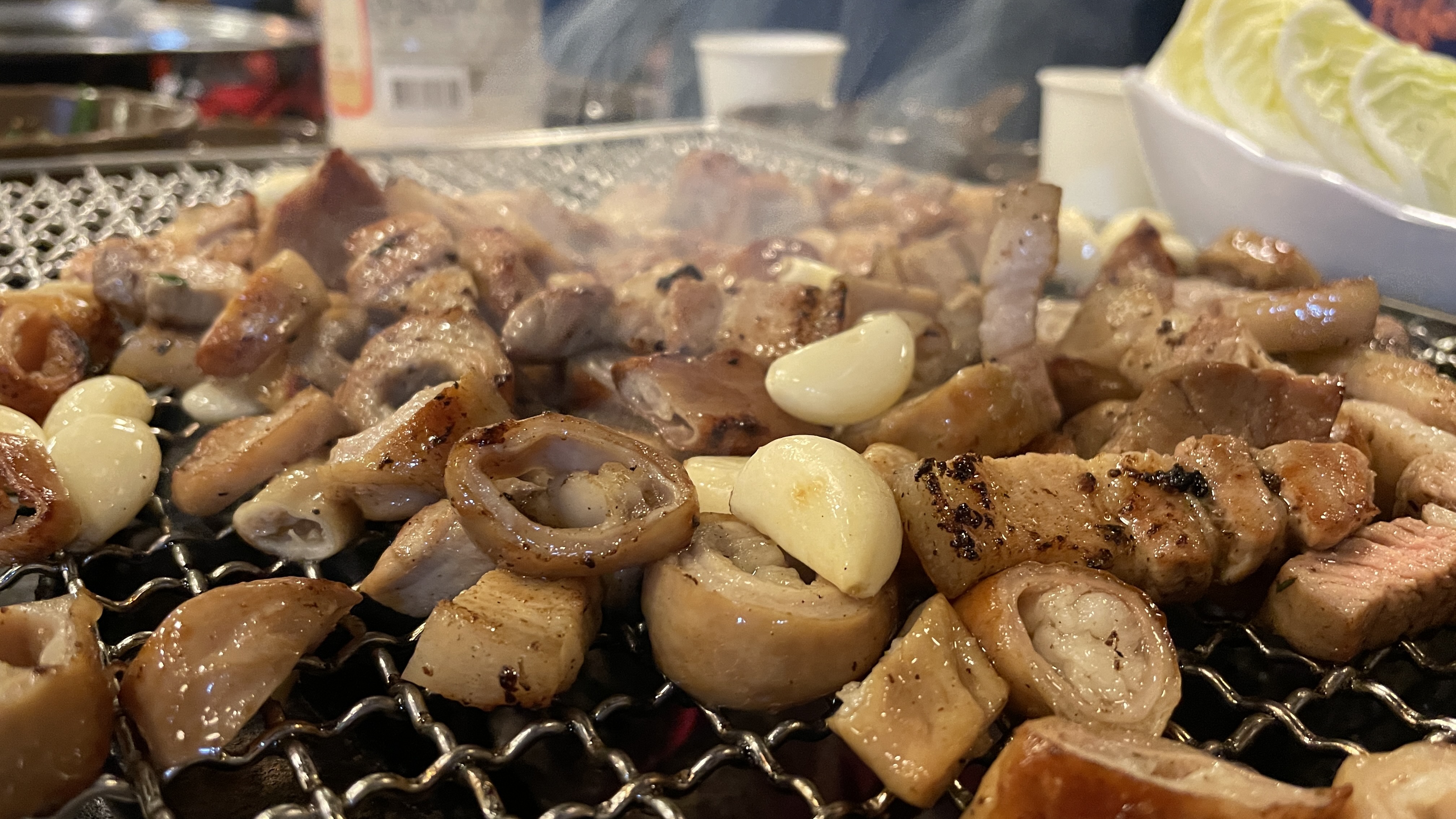 자리잡고, 돼지막창과 삼겹살을 주문했다.