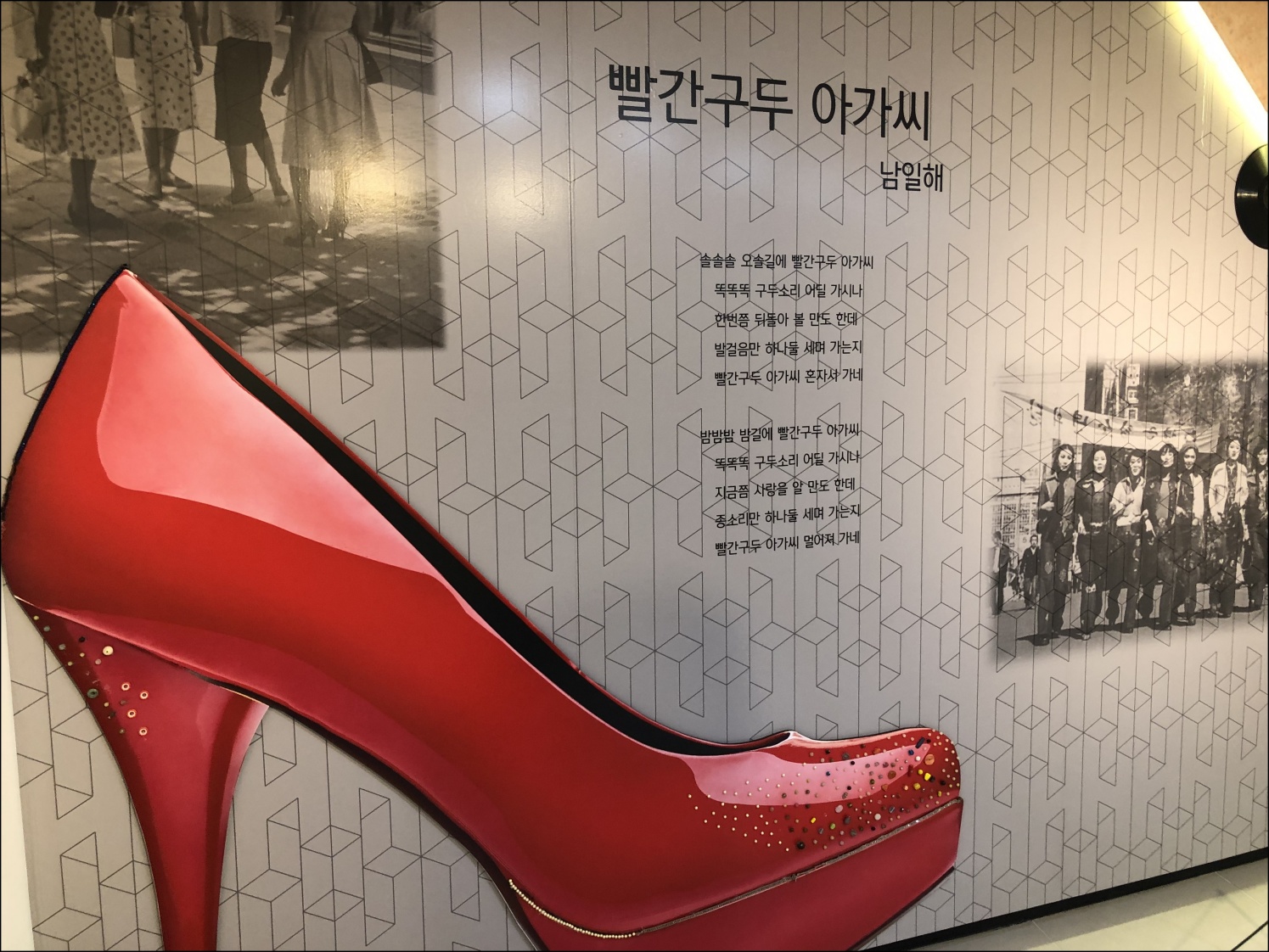 향촌문화관 옆에 빨간 구두 조형물을 보고 선배에게 수제화골목 구경합시다하면서 선배를 이끌었다. 선배는 이 길이 처음이라고 했다. 몇 군데 상점은 임대가 붙어있었다. 수제화골목이다보니 온라인, 아울렛 등에 밀려서 예전만큼 손님이 찾지 않는 듯 했다.