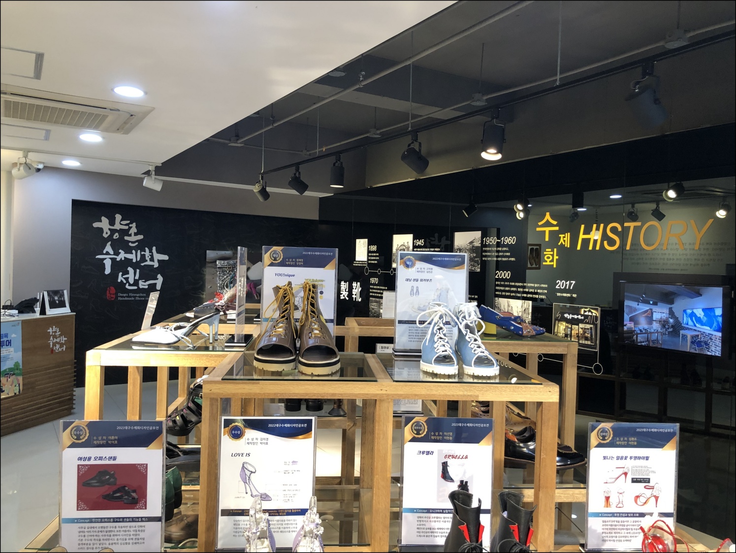 향촌동수제화센터에는 공모전 입상작 전시를 비롯해서 예전에 수제화를 만들때 사용했던 도구 들을 전시하고 있다. 구두 만드는데 활용한 도구를 보는 재미도 살짝 있습니다.