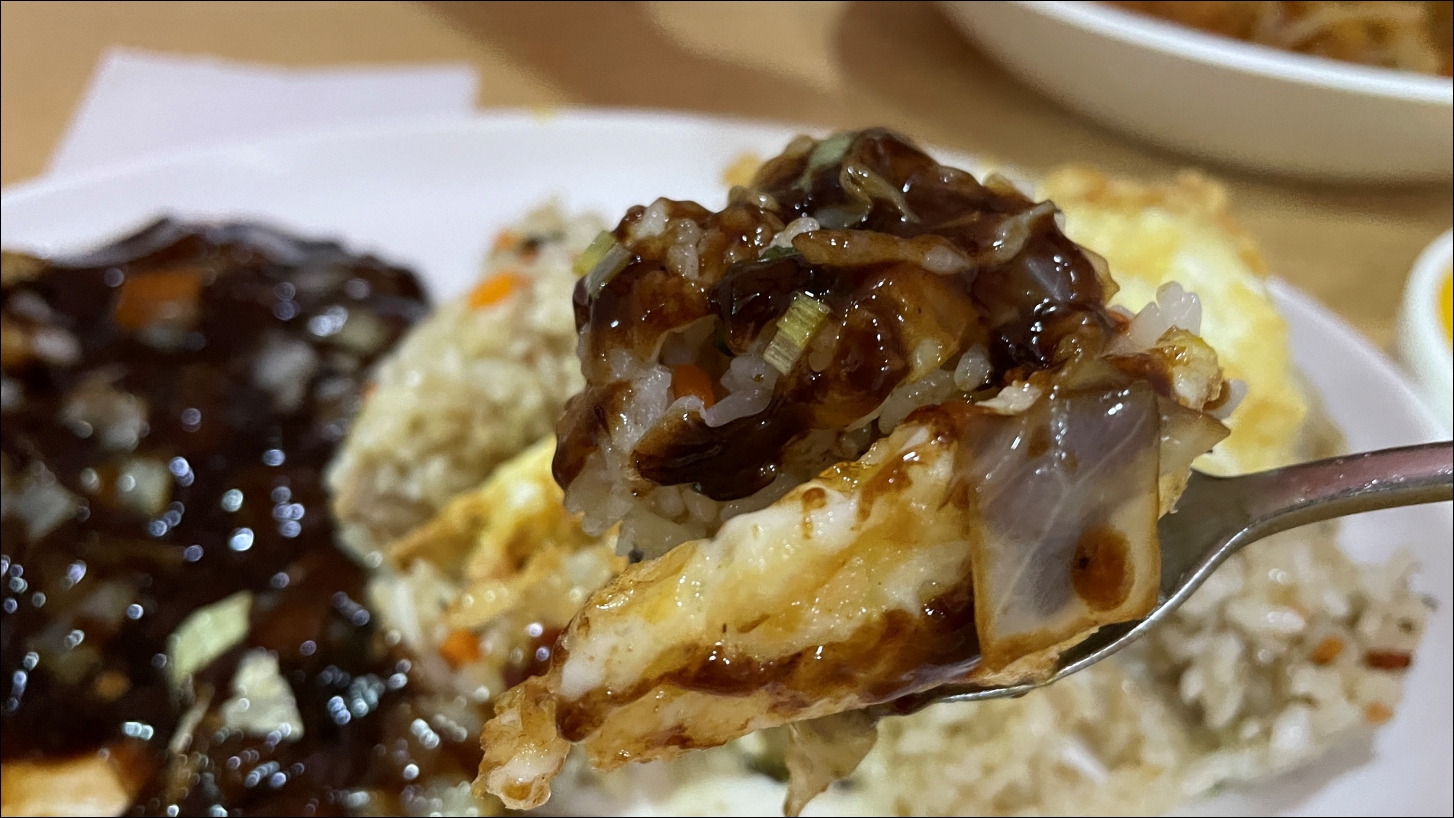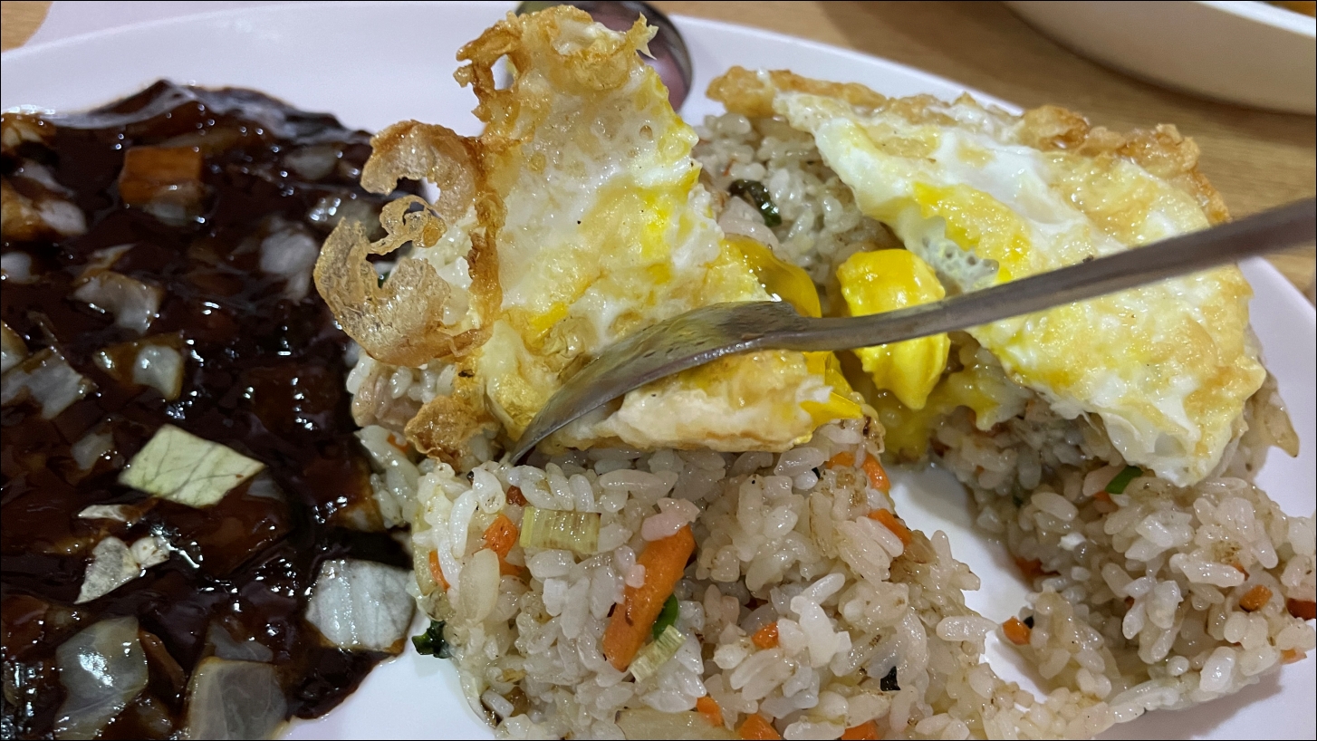짜장을 살짝 올려 비빈다음 계란과 함께 먹는 볶음밥은 기가차게 맛있습니다.