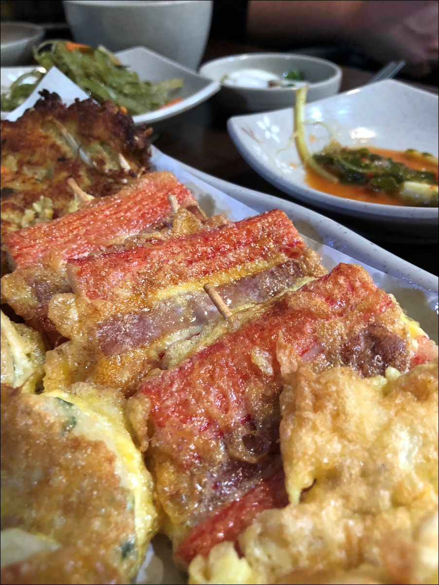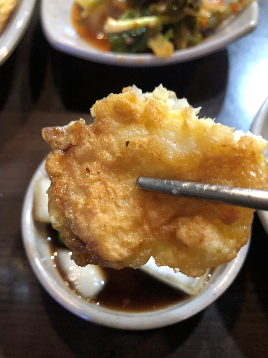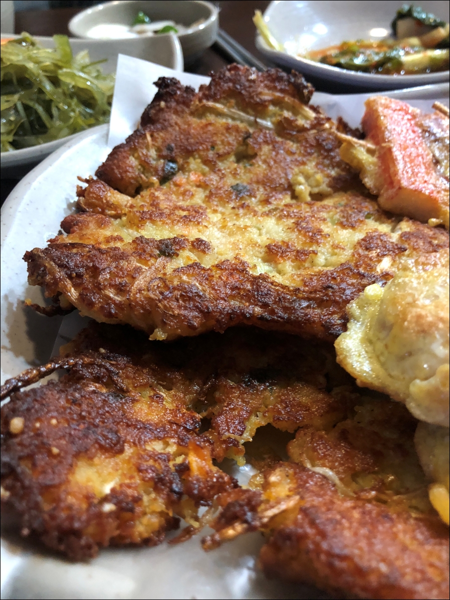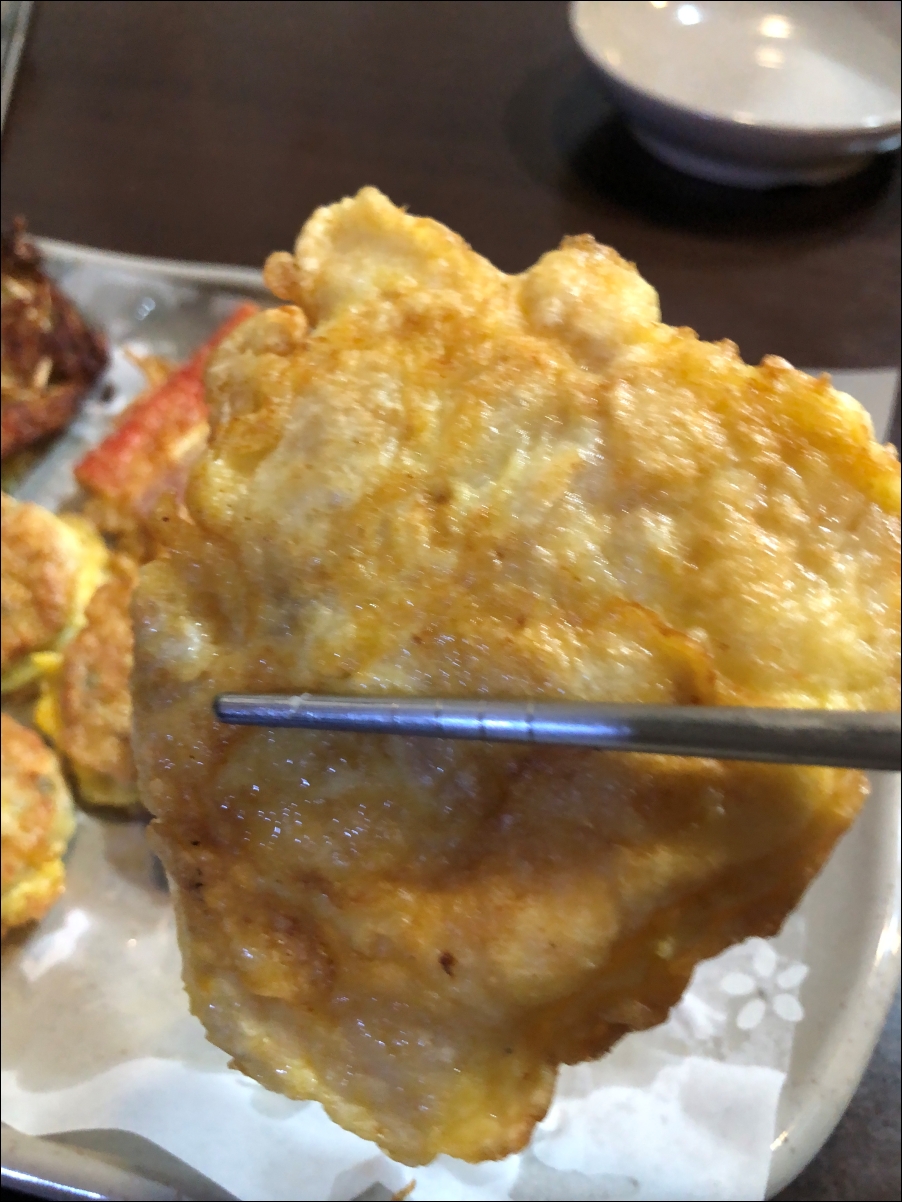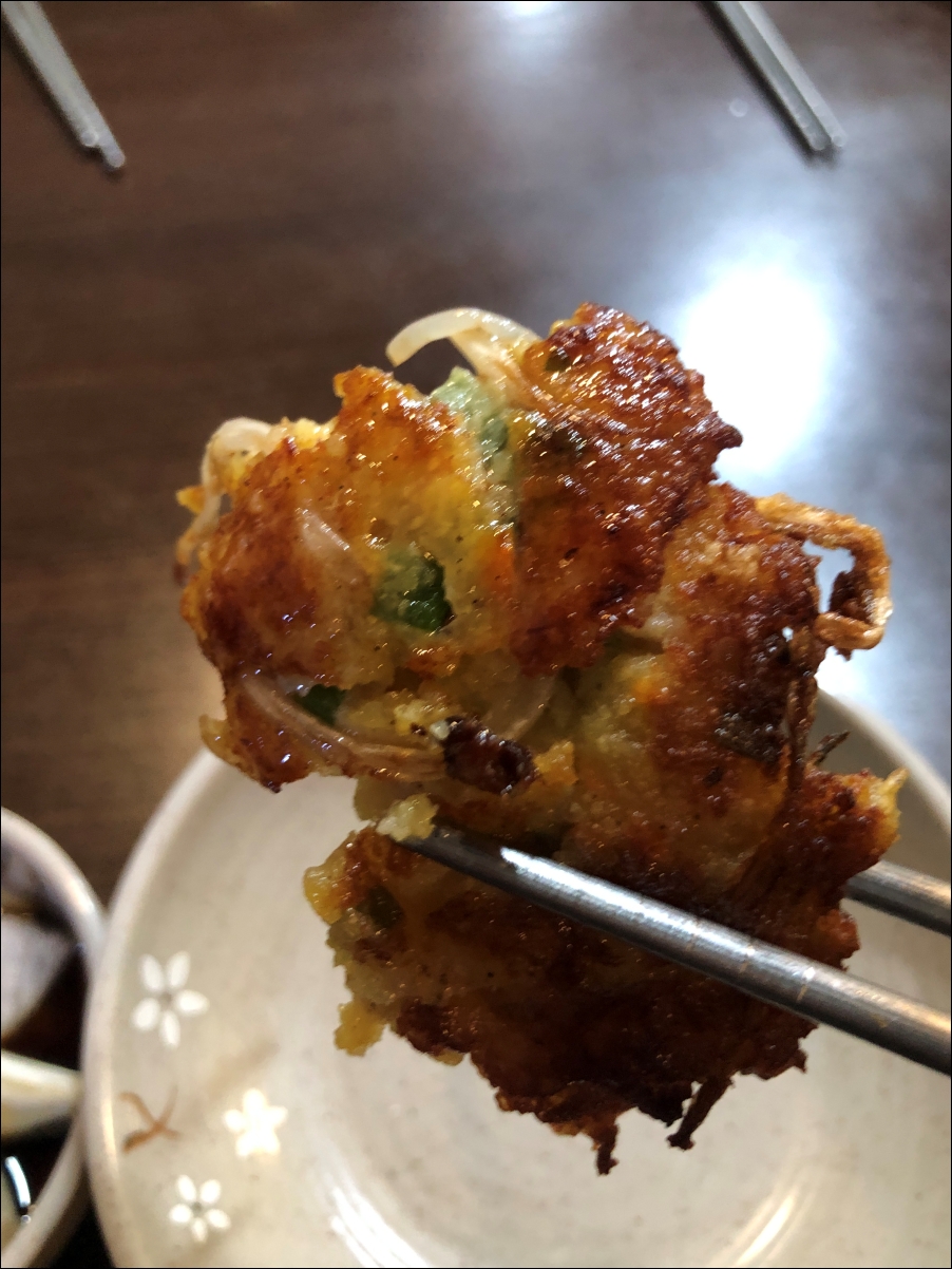 빈대떡은 사장님이 다른곳에 신경을 쓰셨는지 살짝 더 구우신 듯 하하하. 대신에 빠삭하더군요.